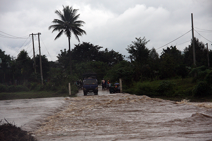 Mưa lớn trên diện rộng đã khiến cho mực nước trên các sông suối dâng cao gây ngập các cầu tràn trên toàn huyện Khánh Sơn làm cho nhiều khu vực bị chia cắt cục bộ. Đặc biệt, trên tuyến Tỉnh lộ 9 đoạn cầu tràn Lò Gạch (thị trấn Tô Hạp), cầu tràn Ko Róa (xã Sơn Lâm) bị ngập sâu.