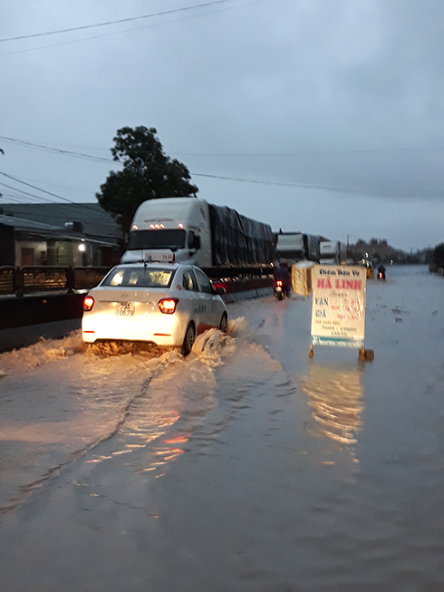 Tại Tỉnh lộ 2 khu vực đèo Đá Lửa bị sạt lở, khu vực chùa Thanh Minh bị ngập cục bộ buộc xã điều tiết giao thông, không cho xe máy đi qua.