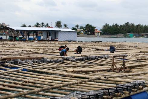 “Sau khi cho cá bớp ăn xong, chúng tôi hứa sẽ cho toàn bộ lao động lên bờ để đảm bảo an toàn”, ông Nguyễn Đức Trọng nuôi cá bớp trên vịnh nói.