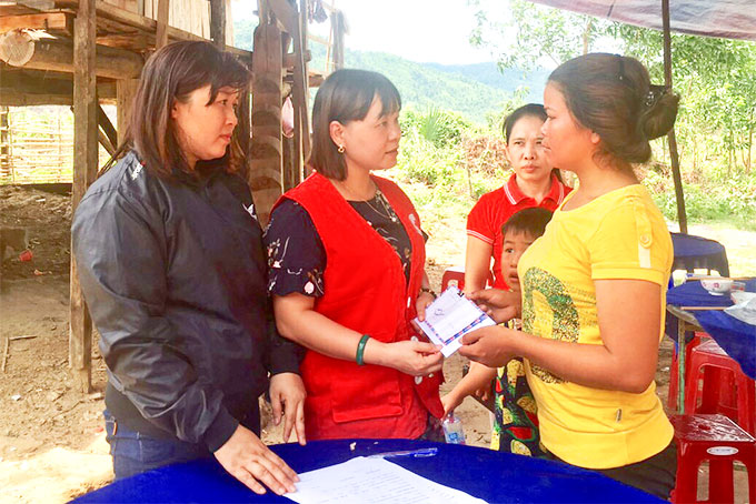 Đại diện Hội Chữ thập đỏ tỉnh trao tiền hỗ trợ cho gia đình nạn nhân. |