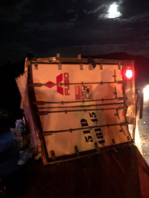 Theo đó, khuya 20-7, tại km 38 đường đèo Khánh Lê, đoạn thuộc xã Sơn Thái, huyện Khánh Vĩnh, xe tải biển số 51D-48145 (chưa rõ người điều khiển) chở đầy rau củ quả Đà Lạt, đang đổ đèo đã bất ngờ đâm vào ta luy đường và bị lật nghiêng.
