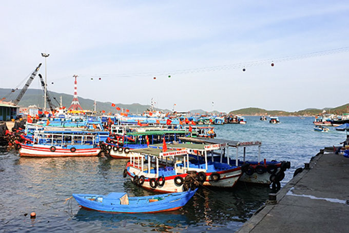 Bến tàu du lịch Cầu Đá (Nha Trang) tập trung rất nhiều phương tiện vận chuyển khách đi các đảo. |