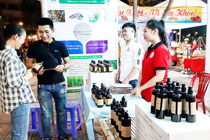 Sản phẩm hóa mỹ phẩm thiên nhiên tham gia triển lãm tại một hội chợ. |