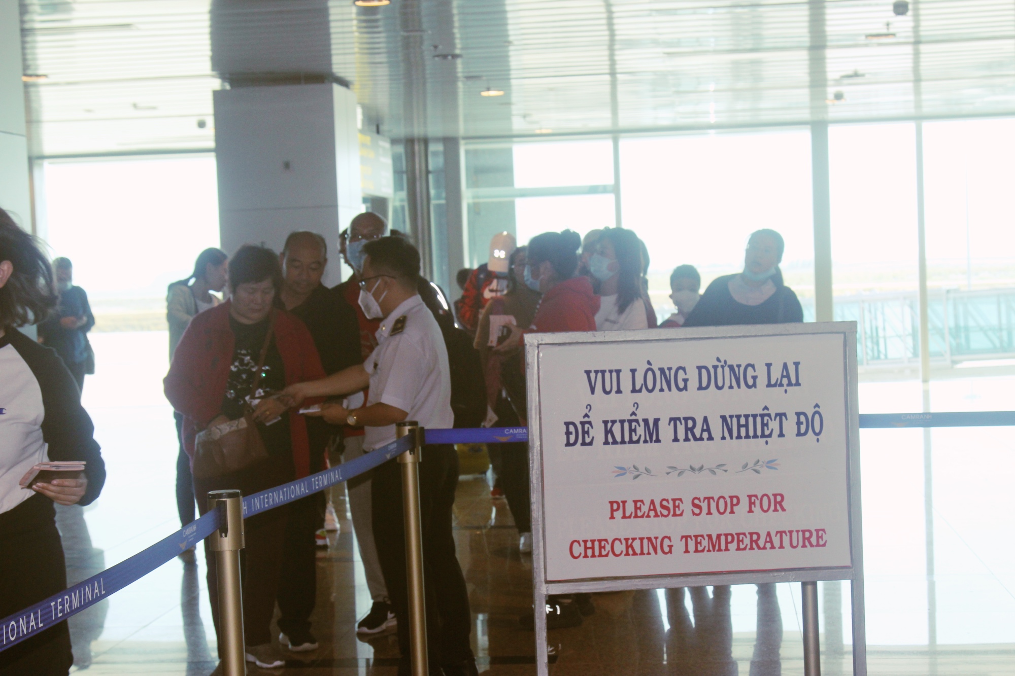 Kiểm tra thân nhiệt du khách tại Sân bay Quốc tế Cam Ranh