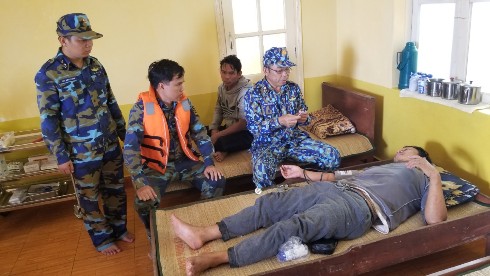 Tiếp đó, tàu HQ521 Hải quân đã kịp thời cơ động đến tiếp nhận 8 ngư dân bị thương từ tàu cá QN 94899 TS để đưa vào đảo Tốc Tan sơ cứu lúc 16 giờ cùng ngày.