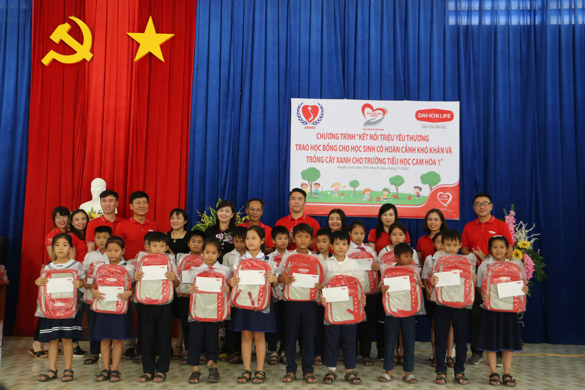 Công ty đã trao 80 suất học bổng và quà tặng với tổng trị giá 50 triệu đồng cho các em học sinh Trường Tiểu học Cam Hòa 1, xã Cam Hòa, huyện Cam Lâm; mỗi suất gồm 1 học bổng 500.000 đồng và 1 ba-lô. Ngoài ra, lãnh đạo và tập thể nhân viên Công ty Dai-ichi Life Việt Nam còn tham gia hoạt động dọn vệ sinh trường học, trồng cây xanh cho nhà trường, nhằm giúp các em học sinh nâng cao hiểu biết và ý thức giữ gìn môi trường sống và học tập xanh - sạch - đẹp từ những hành động nhỏ hàng ngày.