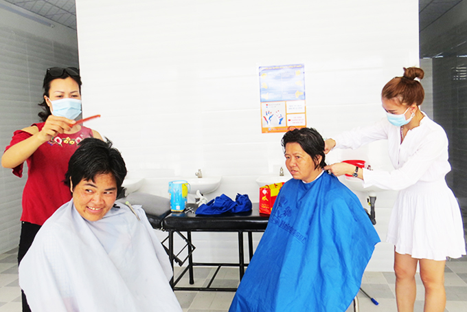 Nhóm cắt tóc cho những người đang được nuôi dưỡng, chăm sóc ở cơ sở 2 Trung tâm Bảo trợ xã hội tỉnh. |