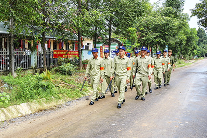 Đội tự quản an ninh trật tự xã Sông Cầu đi tuần tra. |