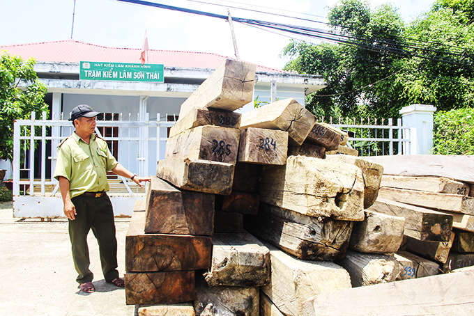 Lâm sản khai thác trái phép bị tạm giữ tại Trạm Kiểm lâm Sơn Thái (huyện Khánh Vĩnh). |