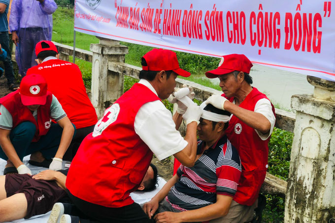 Ngày 13-10, Hội Chữ thập đỏ tỉnh Khánh Hòa phối hợp với xã Ninh Phú, thị xã Ninh Hòa tổ chức diễn tập ứng phó với bão khẩn cấp năm 2022.