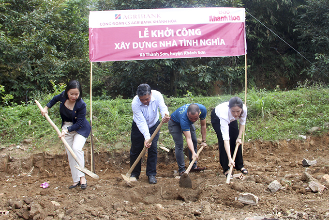 Sáng 27-2, lãnh đạo Báo Khánh Hòa và Ngân hàng Nông nghiệp và Phát triển nông thôn (Agribank) Chi nhánh Khánh Hòa đến dự lễ khởi công xây dựng 2 căn nhà tình nghĩa cho hộ nghèo xã Thành Sơn (huyện Khánh Sơn). Tham dự có ông Mấu Thái Cư - Bí thư Huyện ủy Khánh Sơn.