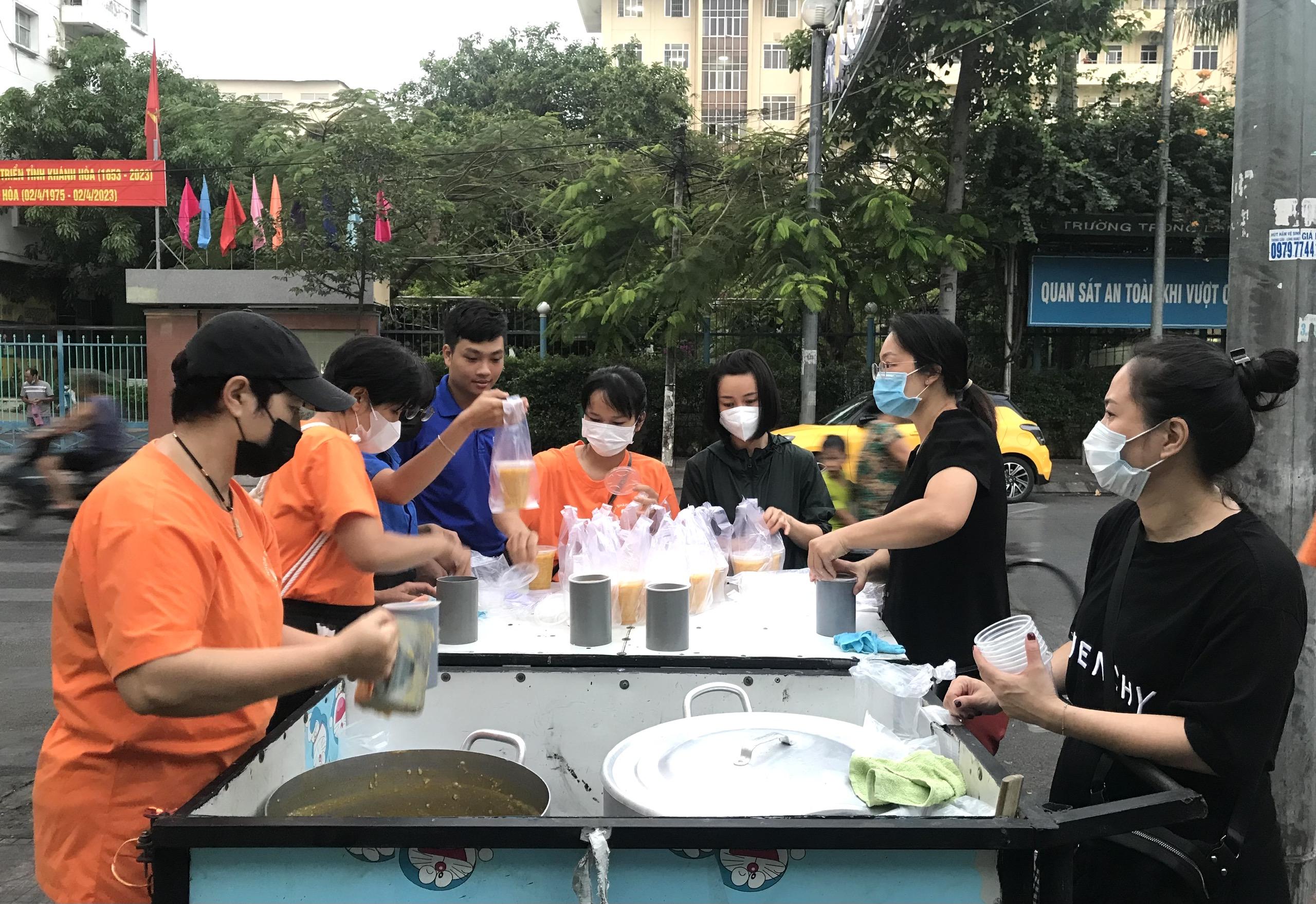Không ai bảo ai, mỗi người một việc, người cọ nồi đun nước, người bật lửa nấu lại nồi cháo đã được ủ từ tối hôm trước, người chuẩn bị sẵn xe để chở cháo đi tới các địa điểm. Sau hơn 1 giờ, các công đoạn nấu nướng đã hoàn tất, 3 nồi cháo nóng hổi, thơm phức được các thành viên chất lên xe, chia làm hai hướng. Một nhóm mang 40 suất cháo tới cho các bệnh nhân đang điều trị tại Bệnh viện Da liễu Khánh Hòa, nhóm còn lại chở tới cổng Bệnh viện Đa khoa tỉnh phát cho bệnh nhân.