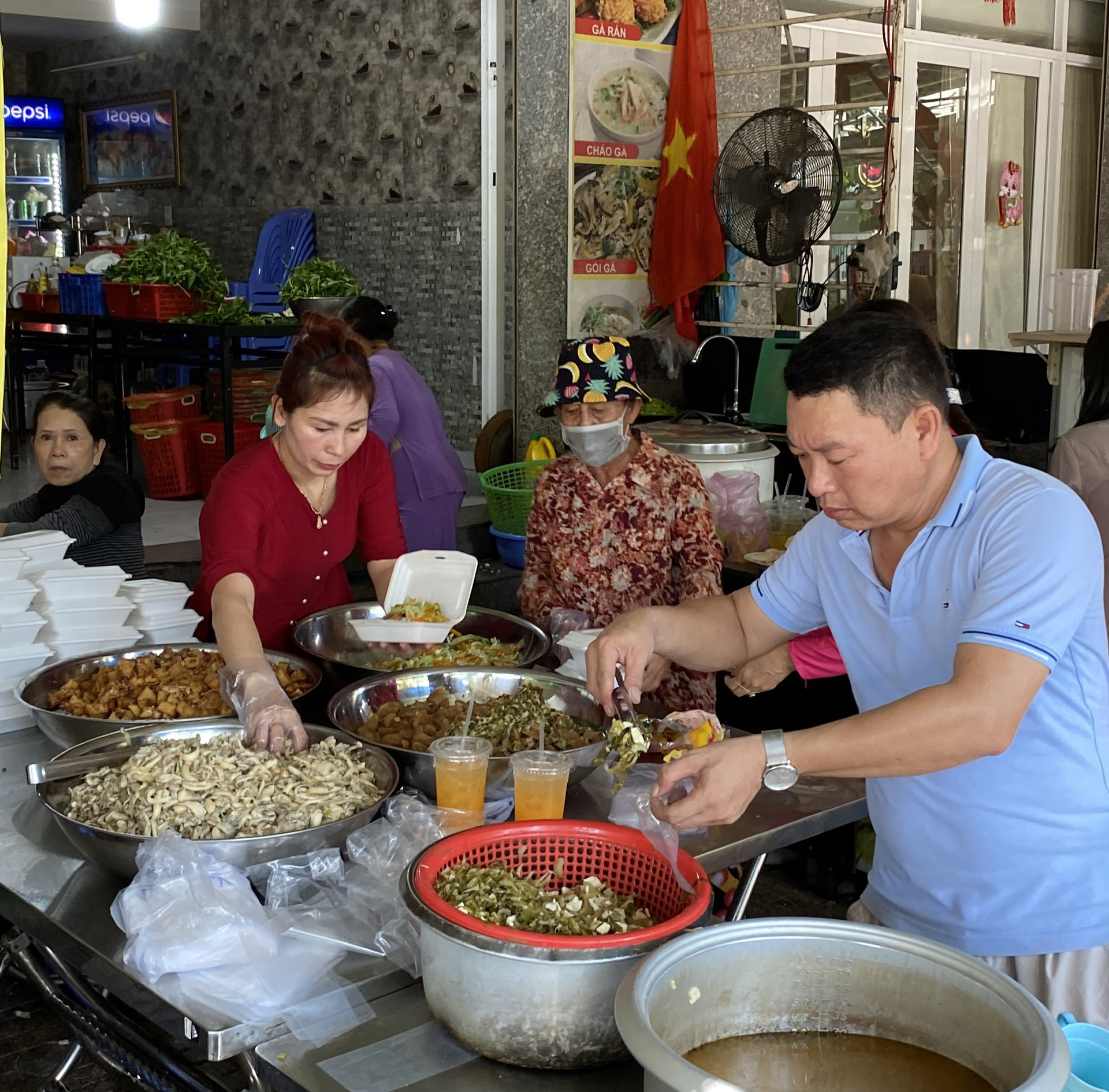 Chia sẻ về việc duy trì các bữa cơm chay phục vụ cho người nghèo, người có hoàn cảnh khó khăn vào ngày rằm, mùng 1 hàng tháng, bà Phạm Thị Thế cho biết, sau một biến cố gia đình, vợ chồng bà mong muốn làm việc gì đó giúp đỡ người khác. Nhiều năm bán quán ăn nên vợ chồng bà quyết định nấu cơm chay để phục vụ cho người nghèo, lao động có hoàn cảnh khó khăn. Ban đầu, chỉ có vài thành viên trong gia đình tham gia nên chỉ nấu được 50 suất. Sau đó, nhiều người biết được việc làm thiện nguyện này nên đến tham gia, người góp công, người góp của. Nhờ đó, các suất cơm của gia đình bà Thế tăng dần, đến nay duy trì 300 - 400 suất/lần. “Những người tới nhận cơm làm đủ nghề, từ chạy grab, bán vé số, tới lượm ve chai, phụ hồ… Niềm vui của họ khiến vợ chồng tôi thấy việc làm của mình rất ý nghĩa. Chúng tôi tâm niệm, dù khó khăn đến mấy cũng cố gắng duy trì việc làm thiện nguyện này, chỉ mong san sẻ bớt phần nhỏ khó khăn cho những người nghèo”, bà Thế tâm sự.