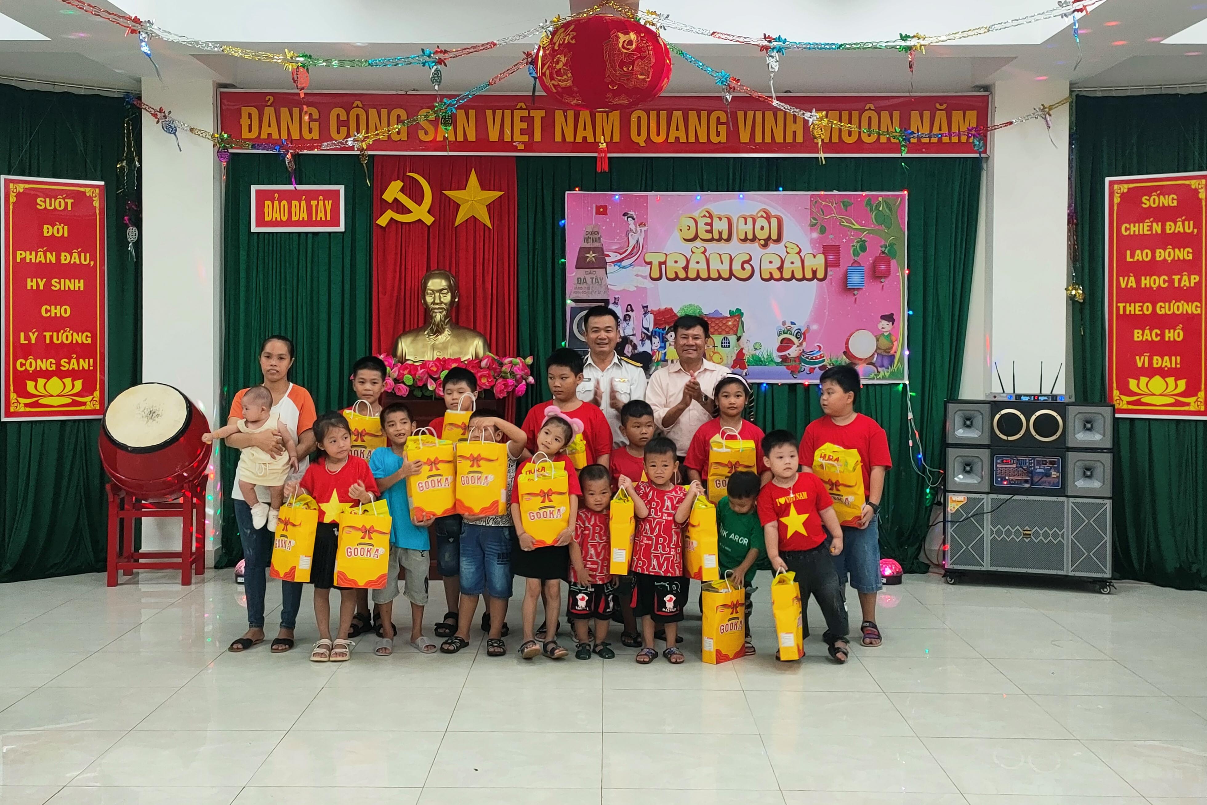 Nhằm mang lại niềm vui, chăm lo tốt cho thiếu nhi ở đảo, các cán bộ, chiến sĩ và các lực lượng đóng quân trên các đảo ở Trường Sa đã phối hợp với chính quyền địa phương tổ chức vui Tết Trung thu cho các em thiếu nhi; giúp các em có một mùa Trung thu ý nghĩa, ấm áp trong tình yêu thương của mọi người. Ông Nguyễn Thế Hùng, công chức xã tại đảo Đá Tây cho biết: "Dù ở đảo xa còn nhiều thiếu thốn, nhưng chúng tôi cùng các cán bộ, chiến sĩ, người dân đều nỗ lực tổ chức cho các thiếu nhi một bữa tiệc Trung thu đầy đủ, để các em không bị thiệt thòi so với các thiếu nhi trong đất liền".