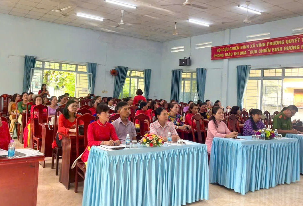 Năm 2024, Hội LHPN Vĩnh Phương đã thực hiện các chương trình hoạt động hội gắn với nhiệm vụ phát triển kinh tế - xã hội của địa phương; các cuộc vận động, các phong trào hội đạt kết quả tốt. Thực hiện Chương trình “Mẹ đỡ đầu”, hội đã nhận đỡ đầu 1 trẻ em mồ côi là học sinh của Trường Tiểu học Vĩnh Phương 1 trong năm học 2024 – 2025 với số tiền 6 triệu đồng. Bên cạnh đó, hội đã vận động mạnh thường quân trao tặng 20 suất học bổng trị giá 8 triệu đồng cho học sinh; tặng nhiều phần quà cho các hộ gia đình khuyết tật, khó khăn trên địa bàn xã…