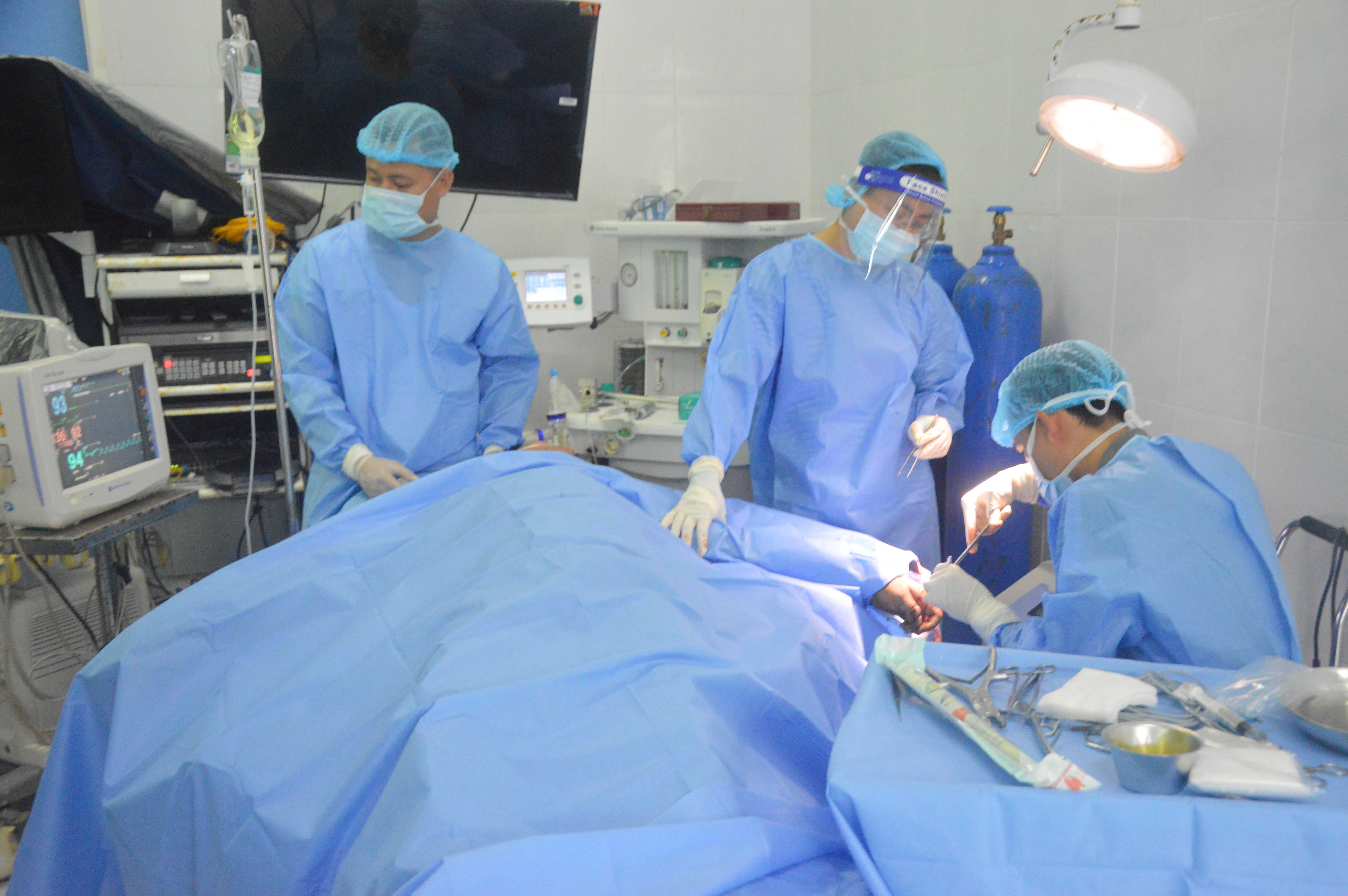 | Các bác sĩ tiến hành phẫu thuật cho ngư dân. |