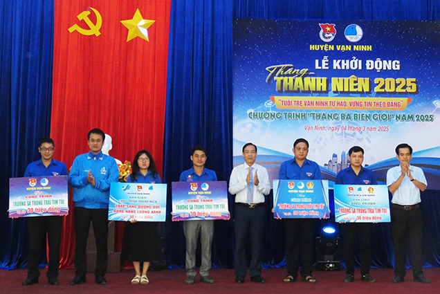 Tại buổi lễ, Huyện đoàn Vạn Ninh đã trao tặng 5 công trình thanh niên “Thắp sáng đường quê bằng năng lượng xanh” và công trình “Trường Sa trong trái tim tôi” cho các đoàn cơ sở với tổng trị giá 150 triệu đồng. Hội đồng đội huyện Vạn Ninh trao tặng 21 suất học bổng từ Quỹ “Thắp sáng ước mơ” cho con em của gia đình chính sách, gia đình cán bộ chiến sĩ, quân nhân đang công tác, làm nhiệm vụ tại biên giới, hải đảo. Hội Liên hiệp Thanh niên Việt Nam huyện Vạn Ninh trao quyết định thành lập câu lạc bộ Green Plan-ET – Hành động vì hành tinh xanh; ra mắt 5 đội thanh niên tình nguyện và tổ chức ký kết thực hiện các chỉ tiêu trong Tháng Thanh niên như: Thực hiện 10 công trình, 20 phần việc thanh niên, góp 10 ngày công lao động chung tay xóa nhà tạm, nhà dột nát; 1.000 lượt đoàn viên, thanh niên tham gia ra quân Chủ nhật xanh, xây dựng nông thôn mới, đô thị văn minh; ra mắt các mô hình sáng tạo, đổi mới như: “Mô hình ngôi nhà xanh”, Tủ sách pháp luật số…