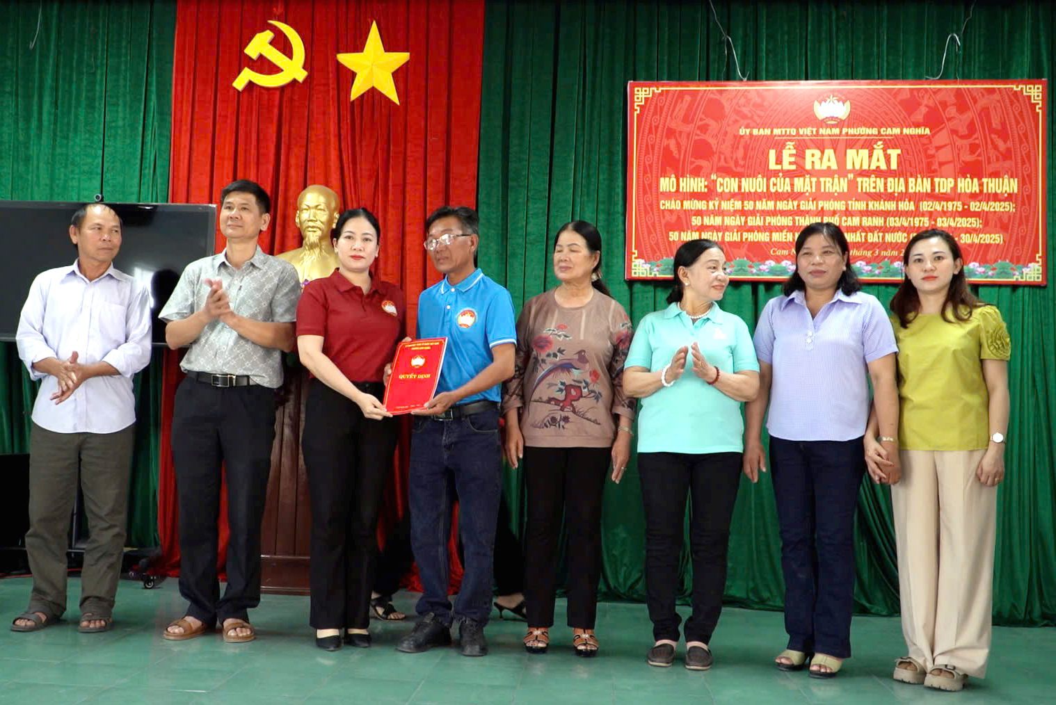 Hưởng ứng phong trào thi đua sôi nổi, hướng đến chào mừng 50 năm Ngày Giải phóng tỉnh Khánh Hòa (2-4-1975 - 2-4-2025), 50 năm Ngày giải phóng thị xã Cam Ranh (3-4-1975 - 3-4-2025) và 50 năm Ngày giải phóng miền Nam, thống nhất đất nước (30-4-1975 - 30-4-2025), chiều 22-3, Mặt trận phường Cam Nghĩa, TP. Cam Ranh tổ chức Lễ ra mắt mô hình “Con nuôi của Mặt trận” tổ dân phố Hòa Thuận. Đây là mô hình đầu tiên được tổ chức ra mắt trên địa bàn TP. Cam Ranh.