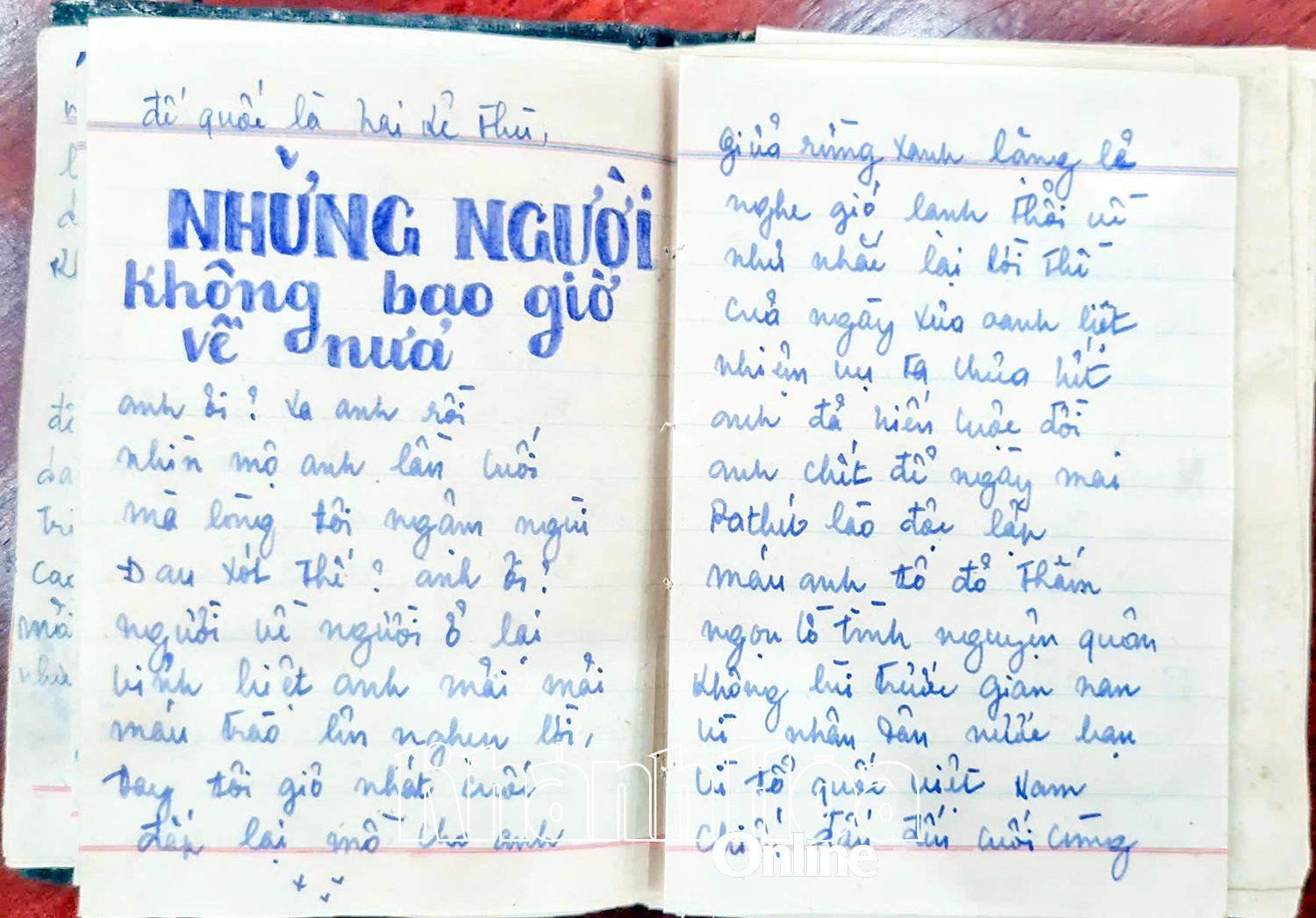 | Một trang nhật ký bằng thơ viết về những đồng đội hy sinh của liệt sĩ Trương Đổi. |