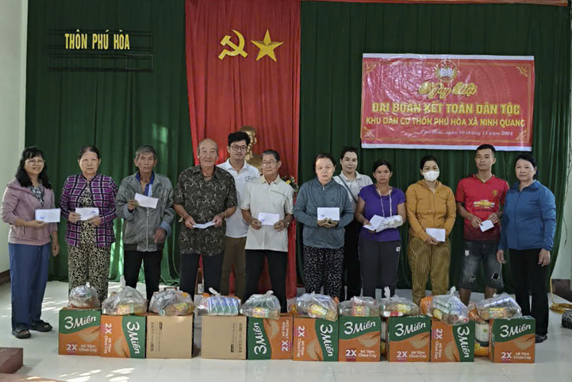 | Tặng quà cho người dân có hoàn cảnh khó khăn ở xã Ninh Quang, thị xã Ninh Hòa. |
