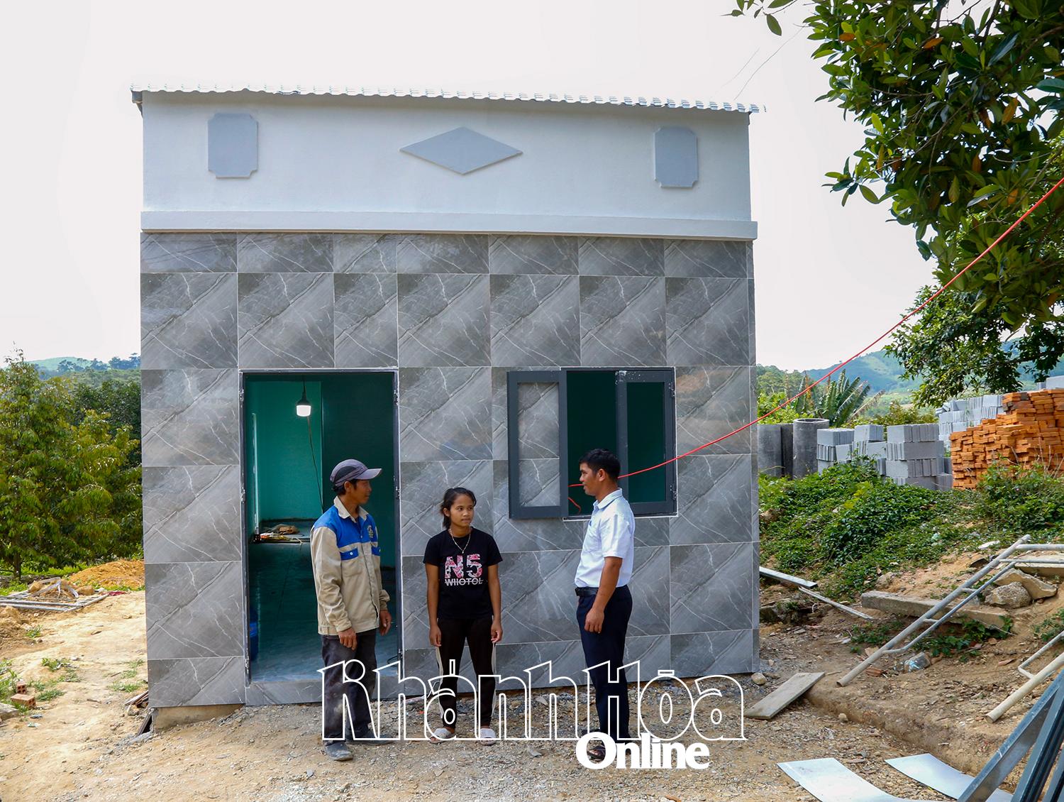 | Đại diện UBND xã Ba Cụm Nam (bìa phải) đôn đốc tiến độ xây dựng, hoàn thành căn nhà của gia đình bà Mấu Thị Ngọc Luyễn. |