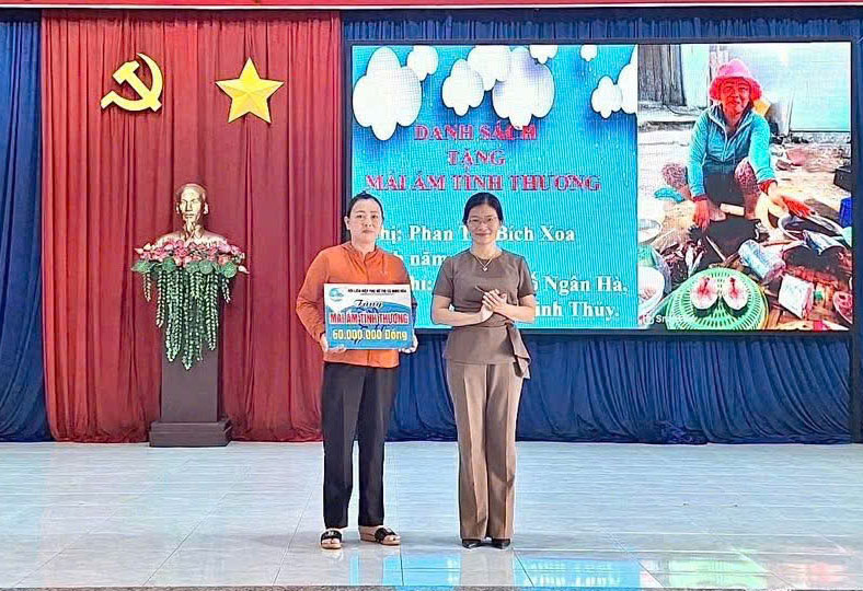 | Trao kinh phí xây dựng nhà Mái ấm tình thương cho phụ nữ có hoàn cảnh khó khăn. |