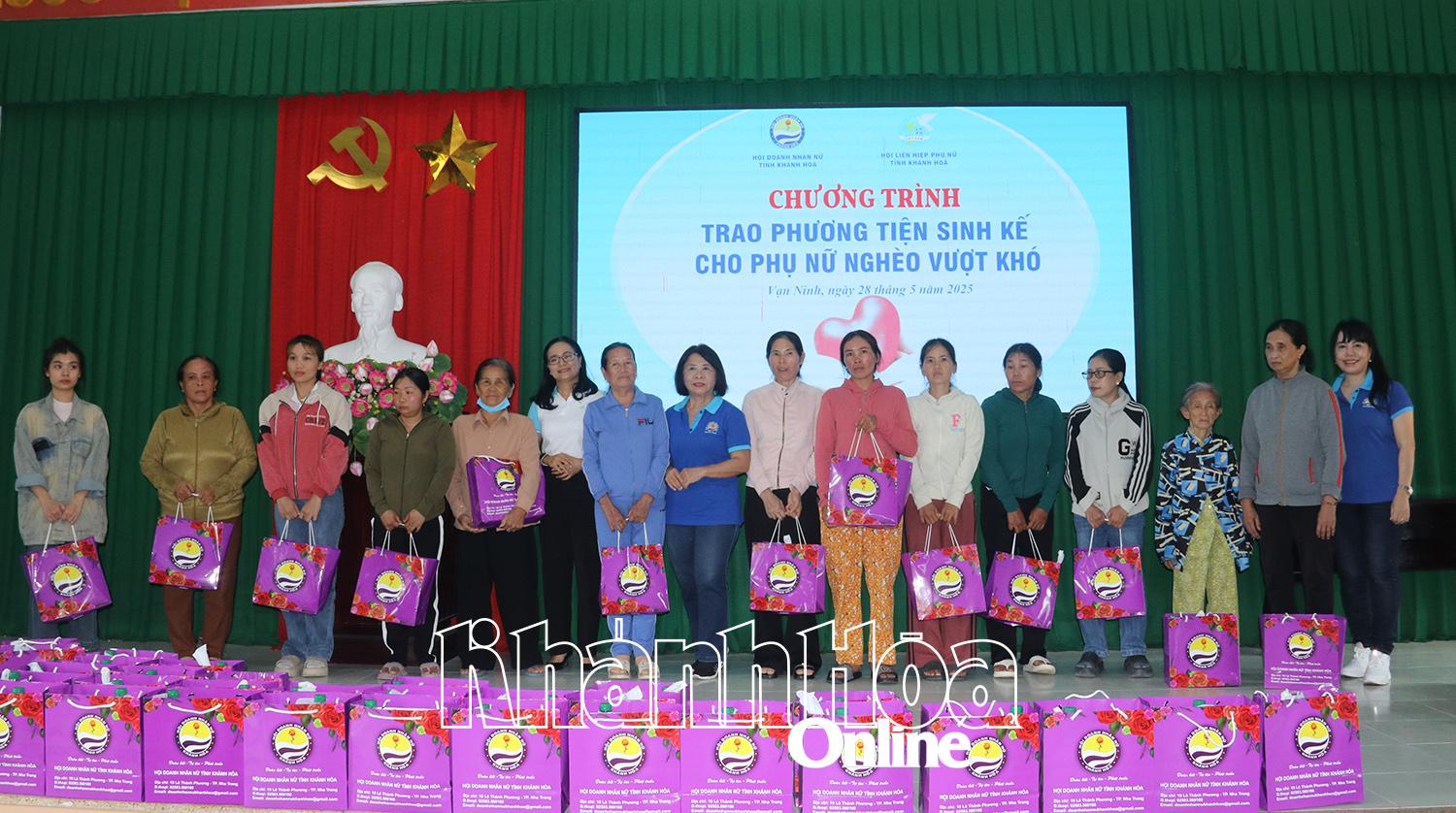 Tại chương trình, Ban tổ chức đã trao tặng 5 phương tiện sinh kế (máy xay bột, máy ép trái cây, máy bơm nước, máy xay nước mía, xe máy), mỗi suất trị giá 5 triệu đồng cho phụ nữ có hoàn cảnh đặc biệt khó khăn ở huyện Vạn Ninh, giúp chị em có điều kiện làm ăn, buôn bán, tăng thu nhập, vươn lên thoát nghèo bền vững.