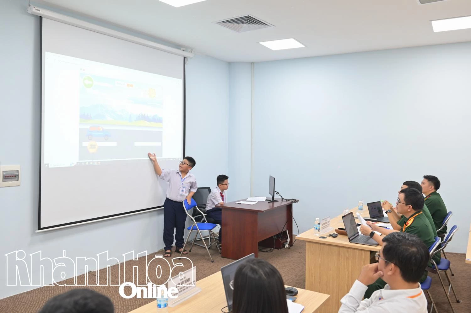 | Các thí sinh thuyết minh về sản phẩm phần mềm sáng tạo. |