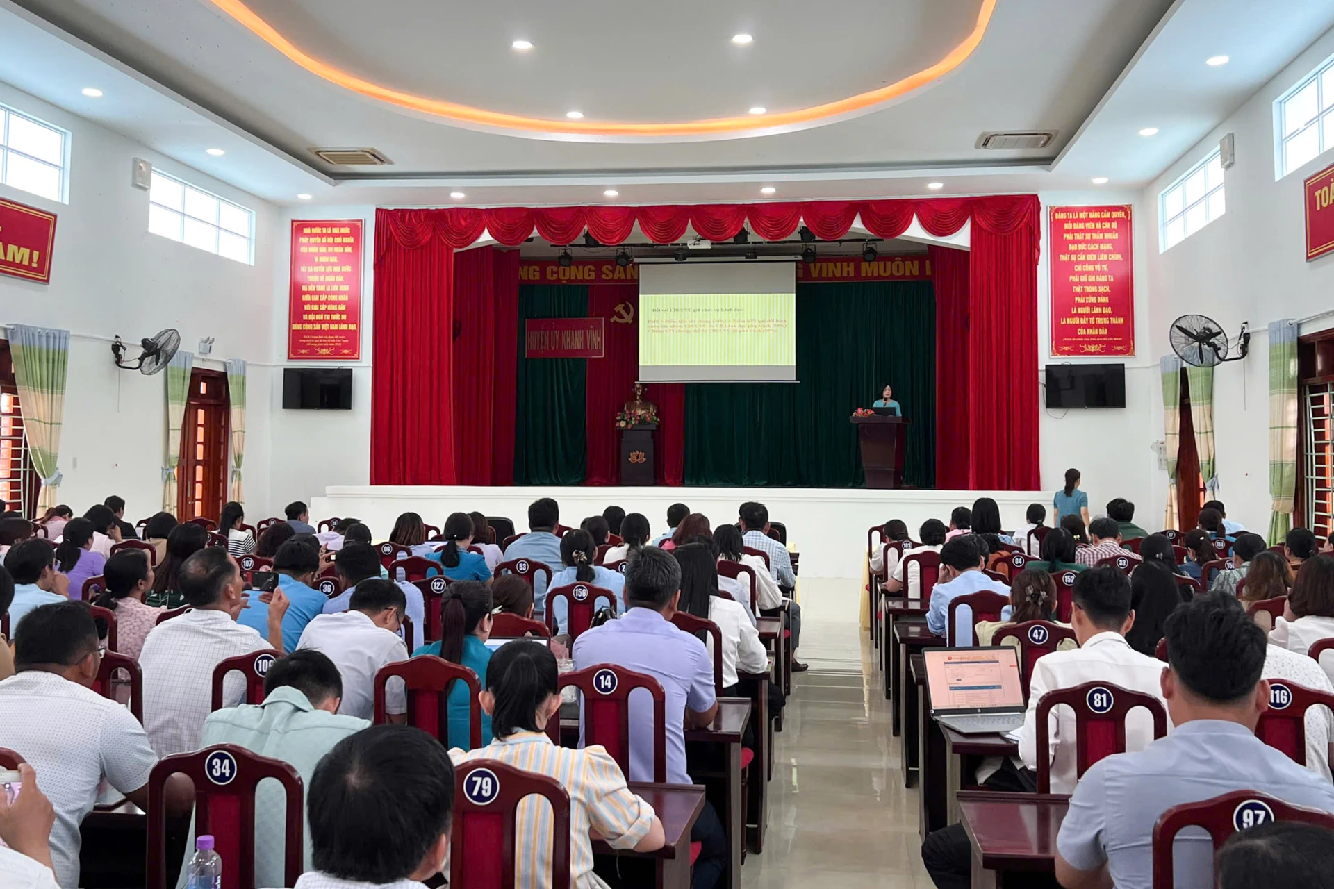 Sáng 24-6, Ban Thường vụ Huyện ủy Khánh Vĩnh tổ chức hội nghị tập huấn sử dụng phần mềm quản lý văn bản, điều hành (E-Office) và bộ công cụ đo lường, đánh giá hiệu quả công việc (KPI) cho cán bộ, công chức, viên chức các cơ quan Đảng, MTTQ và các tổ chức chính trị - xã hội, cơ quan chuyên môn cấp xã mới trên địa bàn. Đây là hoạt động nhằm chuẩn bị triển khai hiệu quả mô hình chính quyền địa phương 2 cấp từ ngày 1-7.