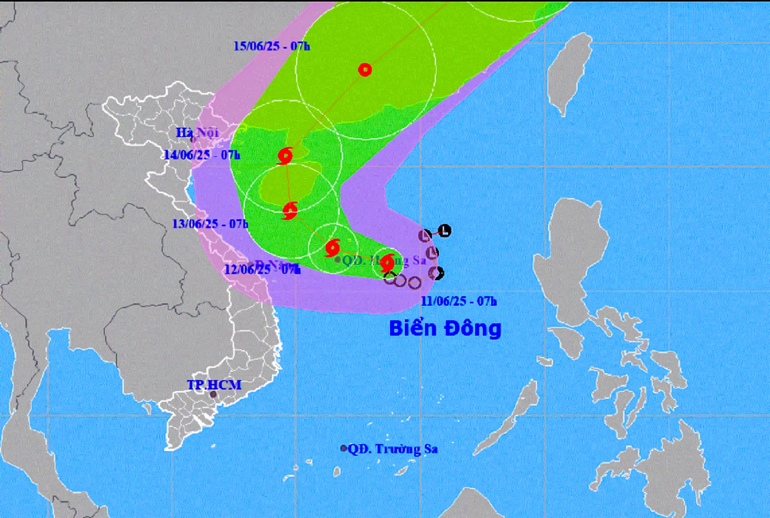 Hồi 7 giờ ngày 11-6, vị trí tâm bão nằm trên vùng biển phía đông quần đảo Hoàng Sa. Sức gió mạnh nhất vùng gần tâm bão mạnh cấp 8 (62-74km/giờ), giật cấp 10; di chuyển chậm theo hướng tây tây bắc với tốc độ khoảng 5-10km/ giờ.