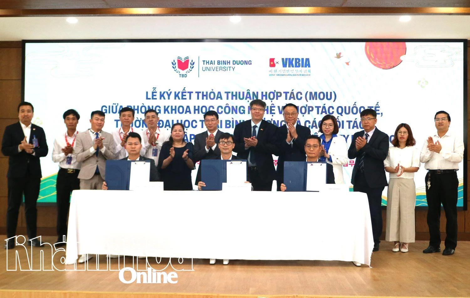 | Phòng Khoa học công nghệ và Hợp tác quốc tế Trường Đại học Thái Bình Dương ký kết thỏa thuận hợp tác với hai doanh nghiệp thành viên của Hiệp hội Doanh nhân và Đầu tư Việt Nam - Hàn Quốc. |