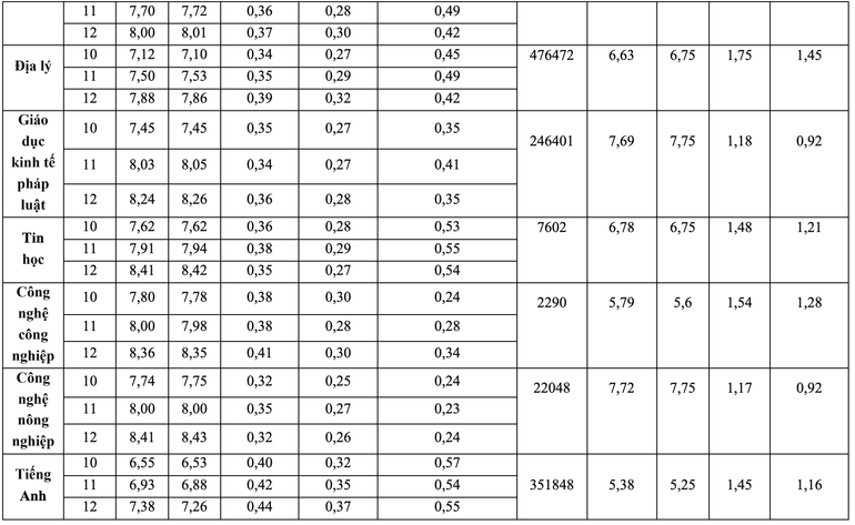 Một số môn điểm thi tốt nghiệp THPT thấp hơn khá nhiều so với điểm học bạ. Như môn Toán, điểm trung bình tốt nghiệp của thí sinh là 4,78 điểm, trong khi điểm trung bình học bạ của học sinh trong 3 năm học là 7,03 điểm; có nghĩa điểm thi tốt nghiệp THPT đang thấp hơn điểm học bạ tới 2,25 điểm.