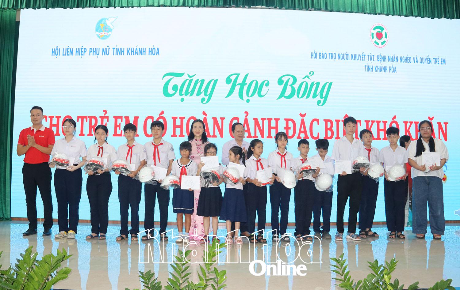 Dịp này, Hội LHPN tỉnh cùng Hội Bảo trợ người khuyết tật, bệnh nhân nghèo và quyền trẻ em tỉnh đã trao tặng 100 suất học bổng (1 triệu đồng/suất và quà) cho trẻ em mồ côi có hoàn cảnh khó khăn. Tại chương trình, các mạnh thường quân đã trao học bổng cho 2 trẻ em mồ côi và tặng 2 suất quà cho phụ nữ khuyết tật có hoàn cảnh đặc biệt khó khăn, mỗi suất trị giá 2 triệu đồng.