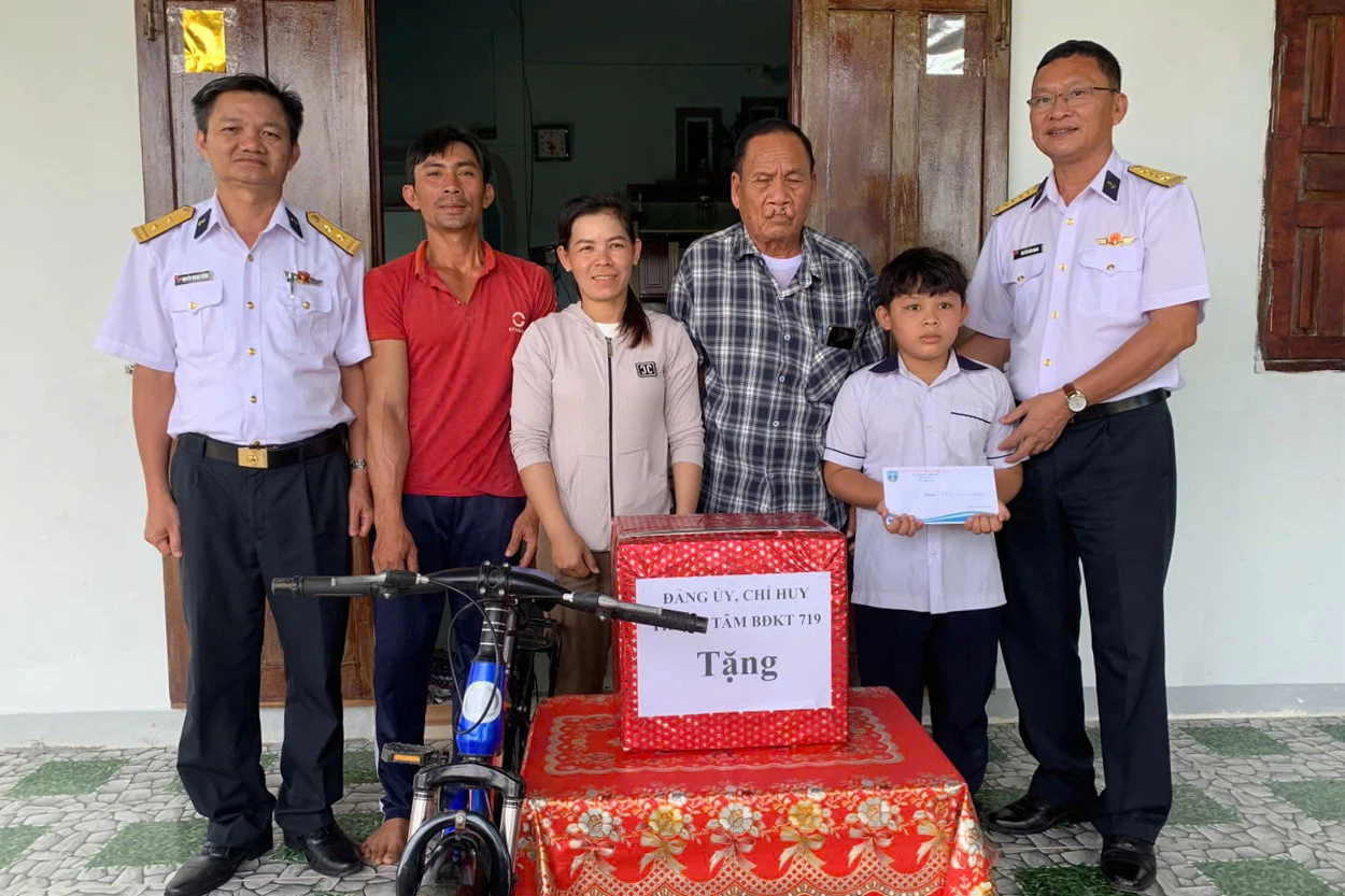 Những năm qua, em Hồ Văn Trọng (xã Phước Dinh) cũng có thêm niềm vui khi trở thành "con nuôi" của những người lính hải quân. Bố là ngư dân, mẹ ở nhà làm nội trợ, kinh tế gia đình em Trọng gặp nhiều khó khăn. Đại tá Nguyễn Văn Quang - Bí thư Đảng ủy, Chính ủy Trung tâm Bảo đảm Kỹ thuật 719, Vùng 4 Hải quân cho biết, đơn vị đã phối hợp với chính quyền địa phương nhận đỡ đầu em Trọng từ tháng 8-2023, huy động các nguồn lực hỗ trợ em 1 triệu đồng/tháng; cán bộ, chiến sĩ đơn vị tặng xe đạp, sách vở, đồ dùng học tập, quần áo, giày dép... Đơn vị xác định đỡ đầu cho Trọng đến đủ 18 tuổi để em có điều kiện học tập tốt và trưởng thành.
