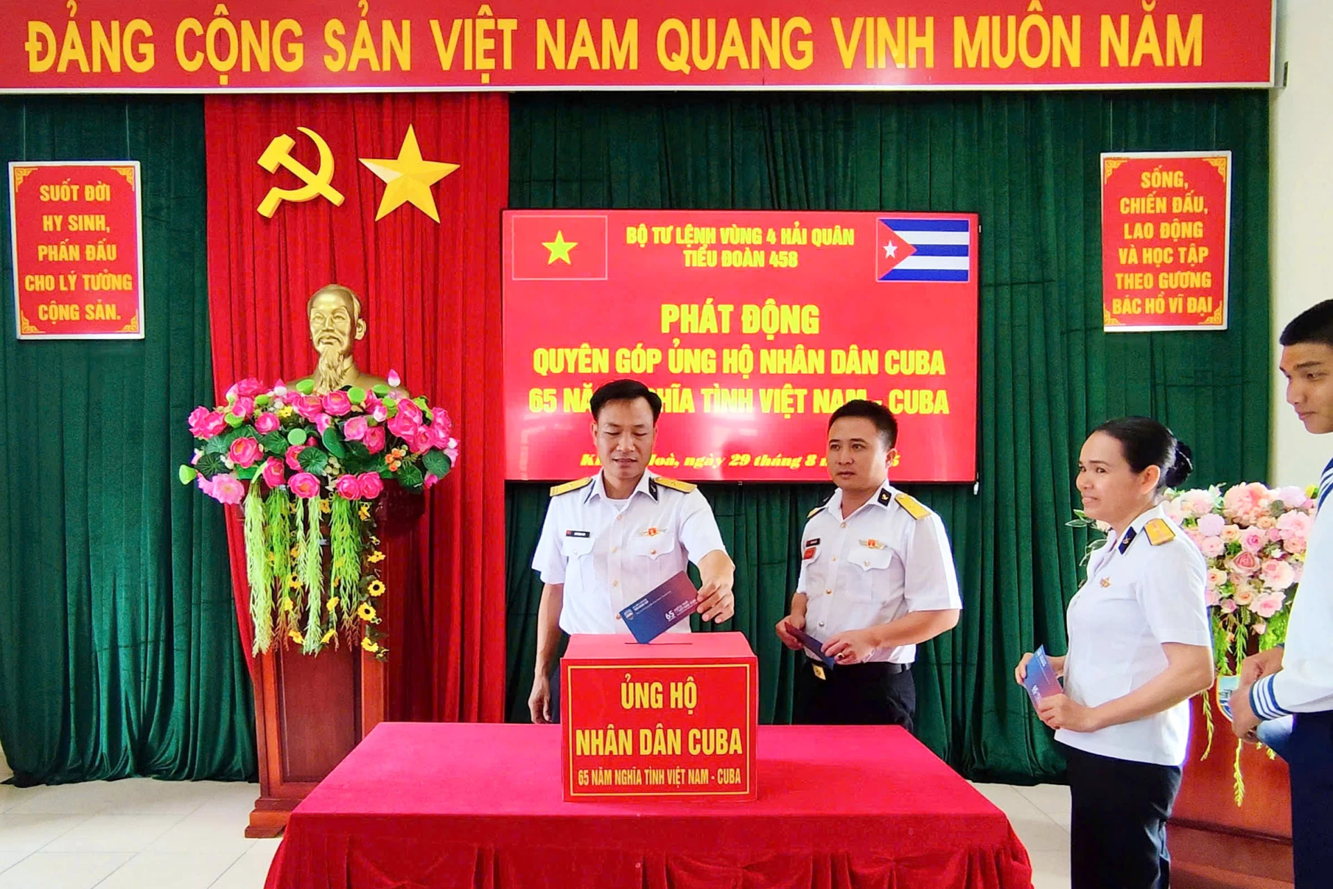 * Cùng ngày, Tiểu đoàn 458, Vùng 4 Hải quân tổ chức phát động hưởng ứng Chương trình quyên góp ủng hộ nhân dân Cuba "65 năm Nghĩa tình Việt Nam - Cuba".