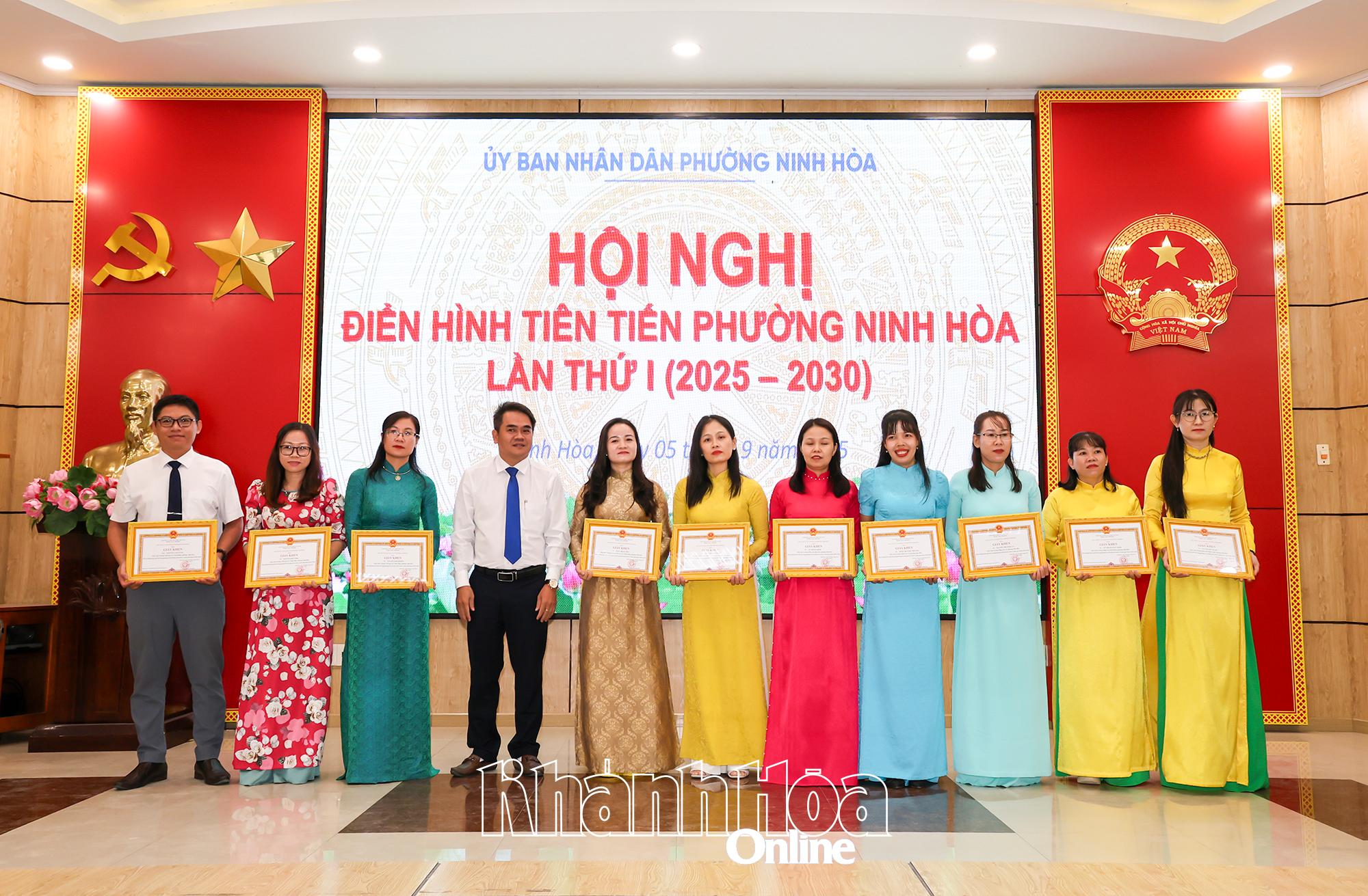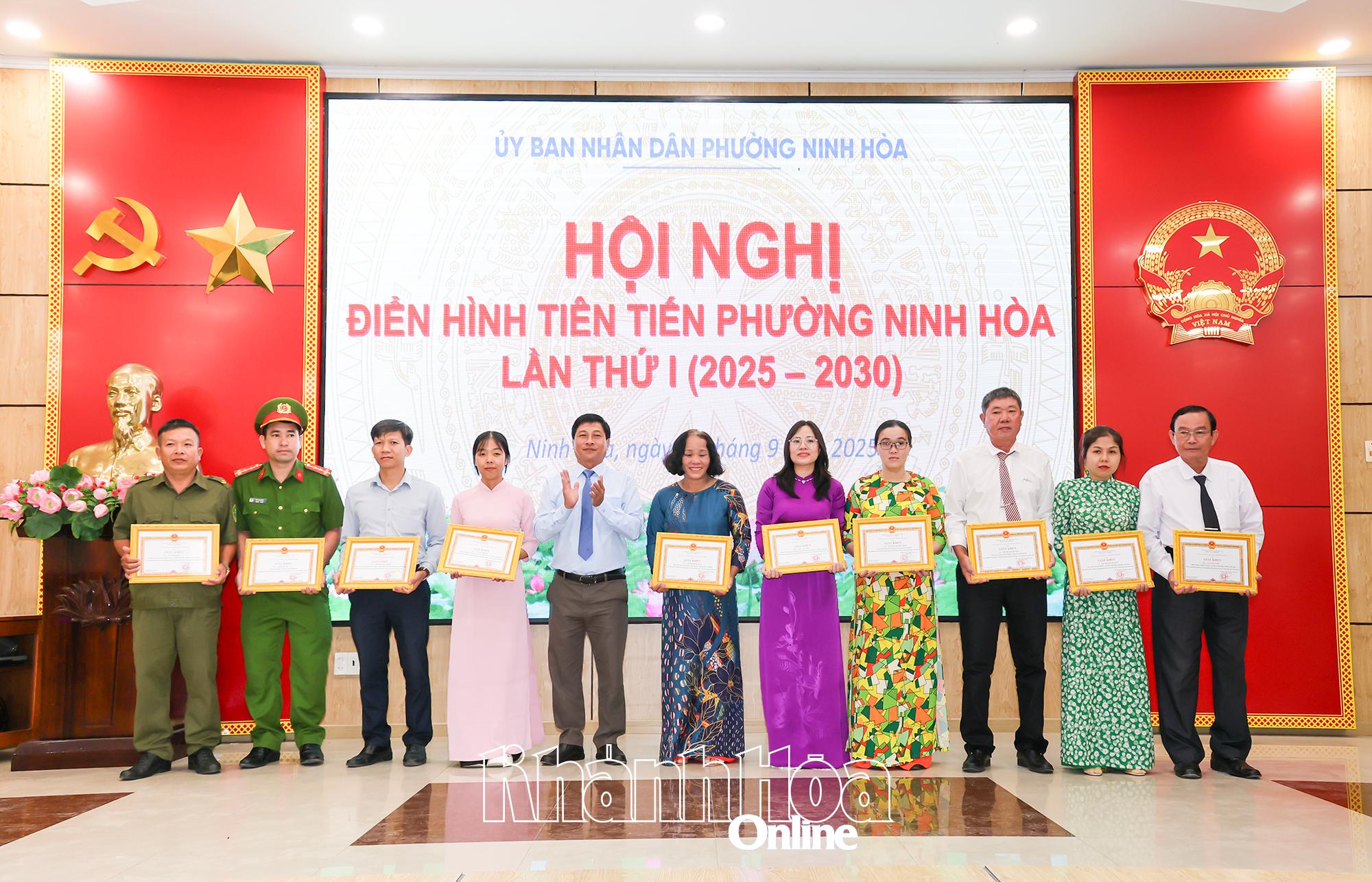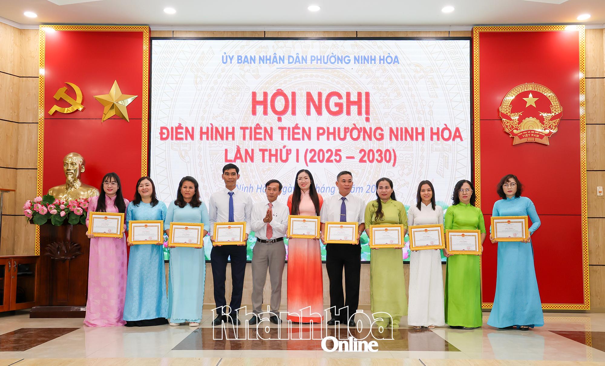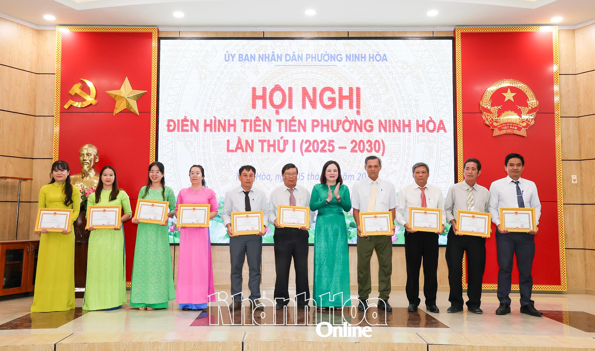 Tại hội nghị, UBND phường Ninh Hòa đã trao giấy khen cho 13 tập thể và 42 cá nhân điển hình tiên tiến giai đoạn 2020 - 2025 vì đã có thành tích xuất sắc trong các phong trào thi đua góp phần thực hiện thắng lợi nhiệm vụ chính trị, phát triển kinh tế - xã hội tại địa phương.