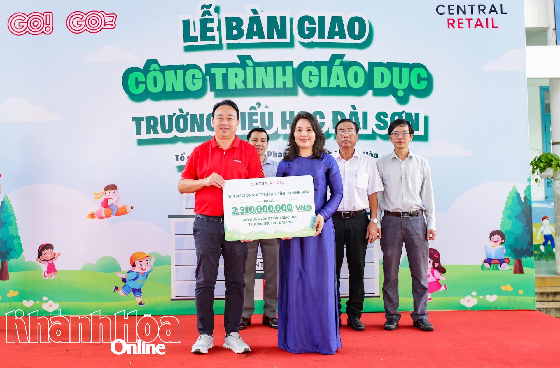 | Đại diện Central Retail Việt Nam trao bảng tượng trưng trị giá tài trợ công trình giáo dục cho Trường Tiểu học Đài Sơn. |