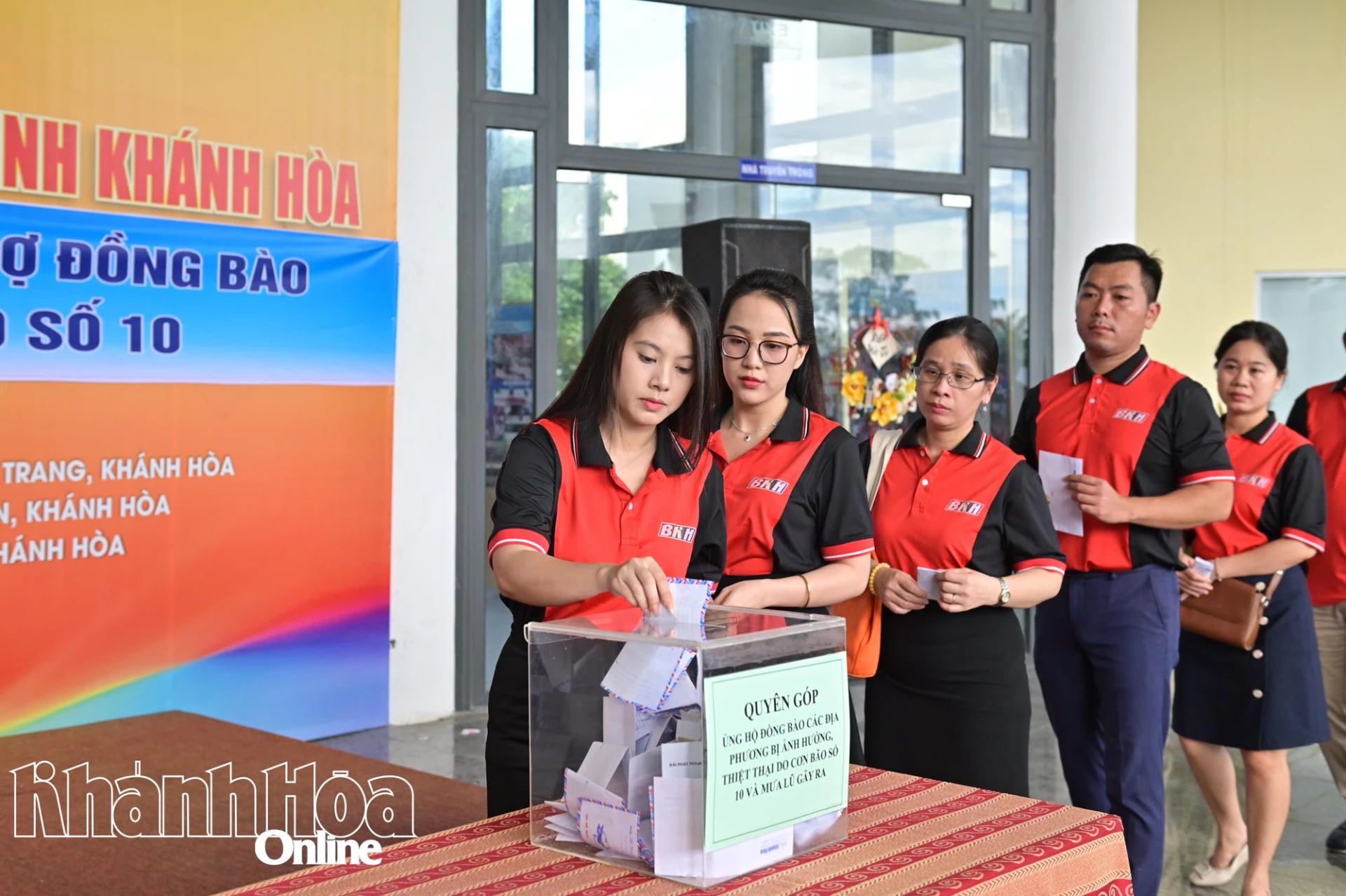 Báo và Phát thanh, Truyền hình Khánh Hòa tiếp tục kêu gọi các tầng lớp nhân dân, tổ chức, cá nhân hảo tâm chung tay đóng góp, giúp người dân vùng bão lũ khắc phục khó khăn, sớm ổn định cuộc sống. Đợt vận động diễn ra từ ngày 13 đến 31-10. Mọi sự ủng hộ có thể gửi trực tiếp tại các cơ sở của Báo và Phát thanh, Truyền hình Khánh Hòa hoặc chuyển khoản qua số tài khoản 0581000765262 tại Ngân hàng TMCP Ngoại thương Việt Nam (Vietcombank) Chi nhánh Nha Trang hoặc 4700211000059 tại Ngân hàng Nông nghiệp và Phát triển nông thôn (Agribank) Chi nhánh Khánh Hòa.