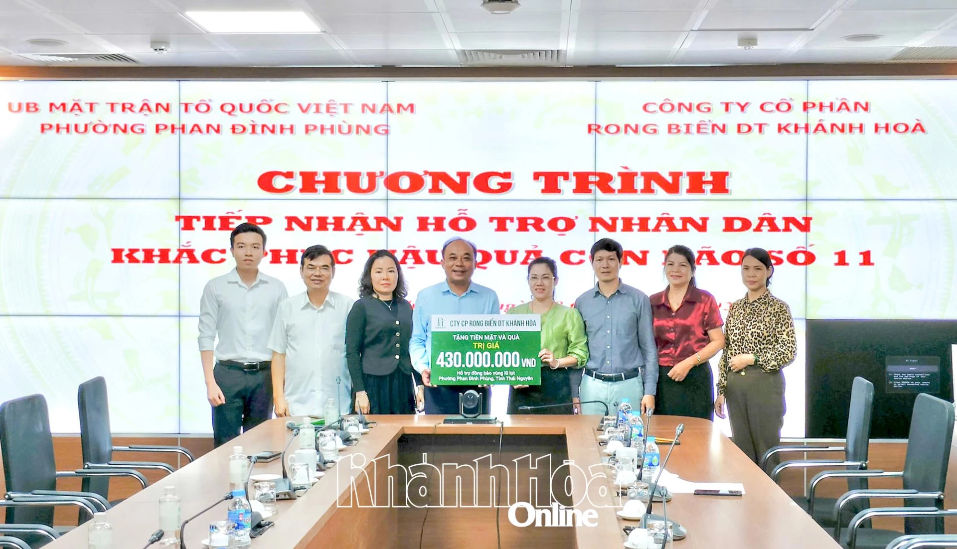 Ngày 28-10, Công ty Cổ phần Rong biển DT Khánh Hòa (D&T Group) phối hợp với Ủy ban MTTQ Việt Nam phường Phan Đình Phùng (tỉnh Thái Nguyên) tổ chức trao 500 suất quà và tiền mặt, tổng trị giá 430 triệu đồng cho người dân bị thiệt hại do bão lũ trên địa bàn.