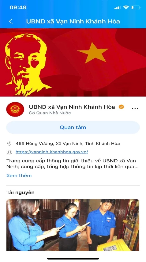 UBND xã Vạn Ninh vừa triển khai kênh truyền thông chính thức “UBND xã Vạn Ninh Khánh Hòa” trên ứng dụng Zalo. Kênh cung cấp, tổng hợp thông tin kịp thời liên quan đến chủ trương của Đảng, chính sách, pháp luật của Nhà nước, thông tin công tác chỉ đạo điều hành; thông tin tổng hợp về các hoạt động, sự kiện chính trị, kinh tế, văn hóa, xã hội của xã Vạn Ninh, của tỉnh trên cơ sở dẫn lại từ nguồn thông tin chính thức theo quy định của pháp luật hiện hành, phù hợp với chức năng, nhiệm vụ được quy định.