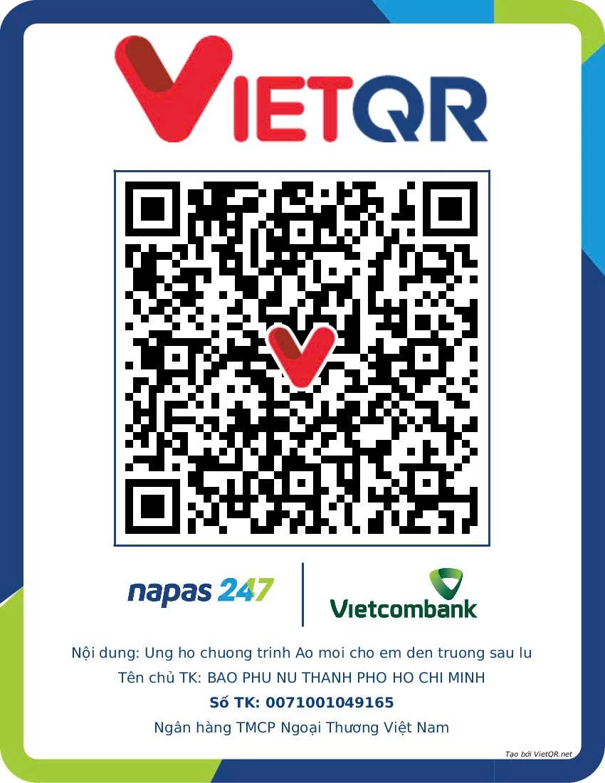 Báo Phụ nữ TP. Hồ Chí Minh, tài khoản 0071001049165 tại Ngân hàng Thương mại Cổ phần Ngoại thương Việt Nam (Vietcombank).