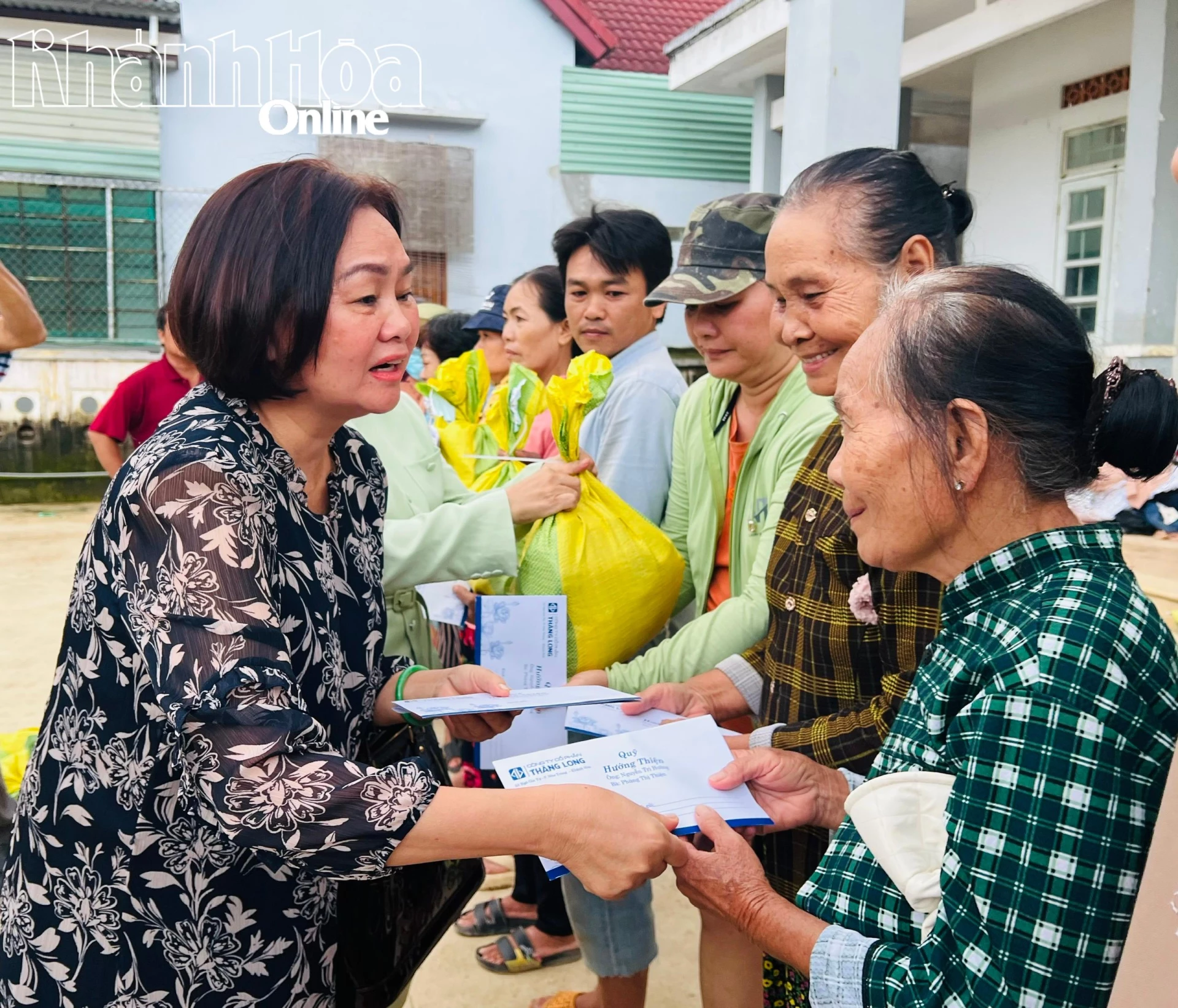 Chiều 26-11, bà Thái Thị Lệ Hằng - Giám đốc Báo và Phát thanh, Truyền hình Khánh Hòa trao 40 phần quà (mỗi phần gồm: 10kg gạo và nhu yếu phẩm khác) và nhiều quần áo cho các hộ dân xóm miếu Củ Chi (thôn Đại Điền Trung 1, xã Diên Điền) - nơi bị ảnh hưởng nặng nề sau đợt mưa lụt vừa qua. Những phần quà được Báo và Phát thanh, Truyền hình Khánh Hòa vận động Công ty TNHH Huy Nam (Huy Nam Seafood) - tỉnh An Giang nhằm kịp thời hỗ trợ người dân khắc phục khó khăn sau lũ lụt.