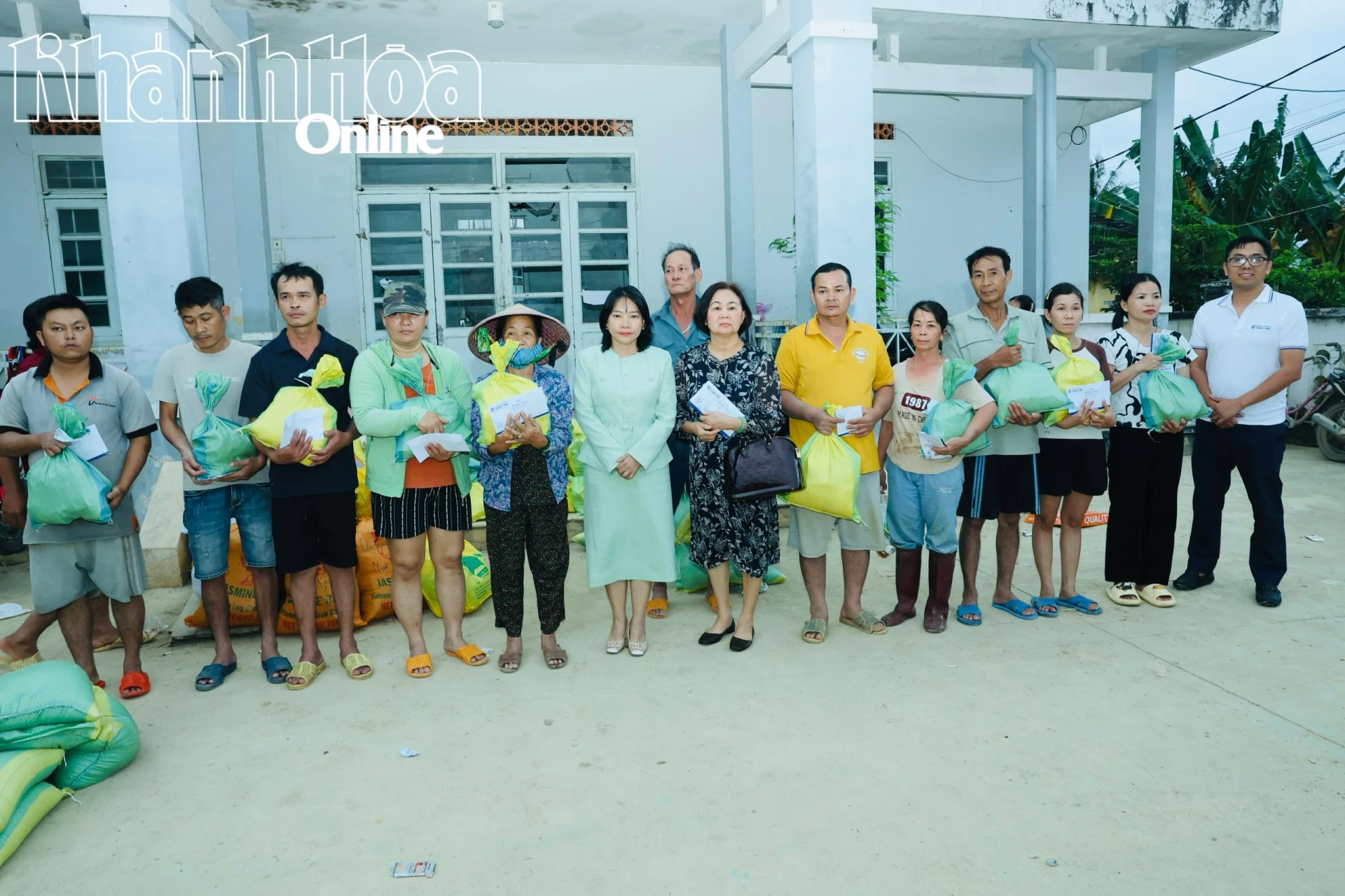 Tại xã Tây Khánh Vĩnh, đoàn đã trao 200 phần quà, mỗi phần gồm: gạo, nhu yếu phẩm khác, mền và 300.000 đồng tiền mặt cho người dân. Tiếp đó, đoàn trao 200 phần quà là nhu yếu phẩm cho người dân xã Khánh Vĩnh; 300 phần quà là nhu yếu phẩm cho người dân xã Nam Khánh Vĩnh bị thiệt hại do đợt thiên tai vừa qua.