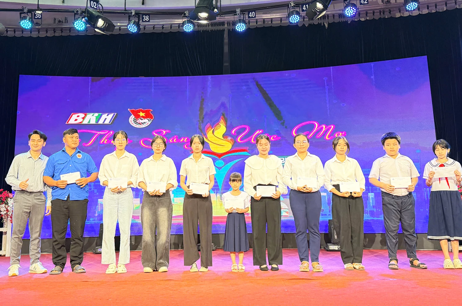 Chương trình đã trao tặng 38 suất học bổng cho 38 học sinh, sinh viên vượt khó học giỏi, mỗi suất 1 triệu đồng. Trong đó: Công ty TNHH Kinh doanh vàng, Đại lý PNJ Bảo Nga hỗ trợ 5 triệu đồng; nhóm thiện nguyện Mỗi tháng một lần: 5 triệu đồng; Công ty TNHH Đá Granite Phát Thành: 5 triệu đồng; BIDV Chi nhánh Ninh Thuận: 3 triệu đồng; Công ty TNHH Măng tây Linh Đan: 10 triệu đồng; anh Nguyễn Ngọc Huy - cựu học sinh Trường THPT Nguyễn Trãi: 5 triệu đồng; bác sĩ Lê Huy Thạch - Giám đốc Bệnh viện Đa khoa Ninh Thuận: 5 triệu đồng.