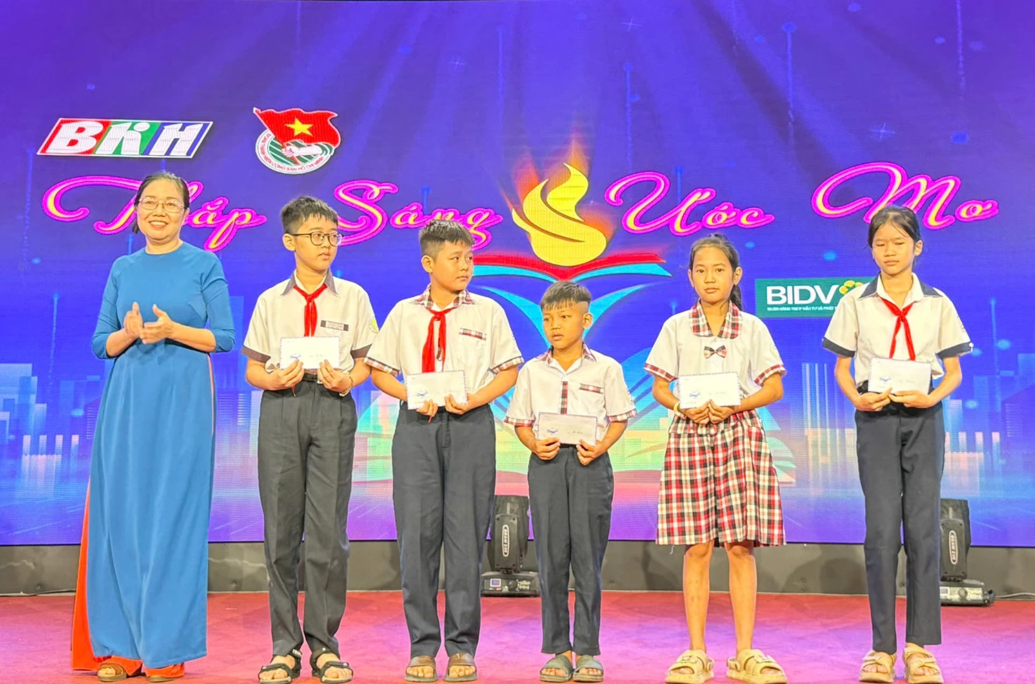| Trao học bổng cho học sinh vượt khó, học giỏi tại chương trình. |