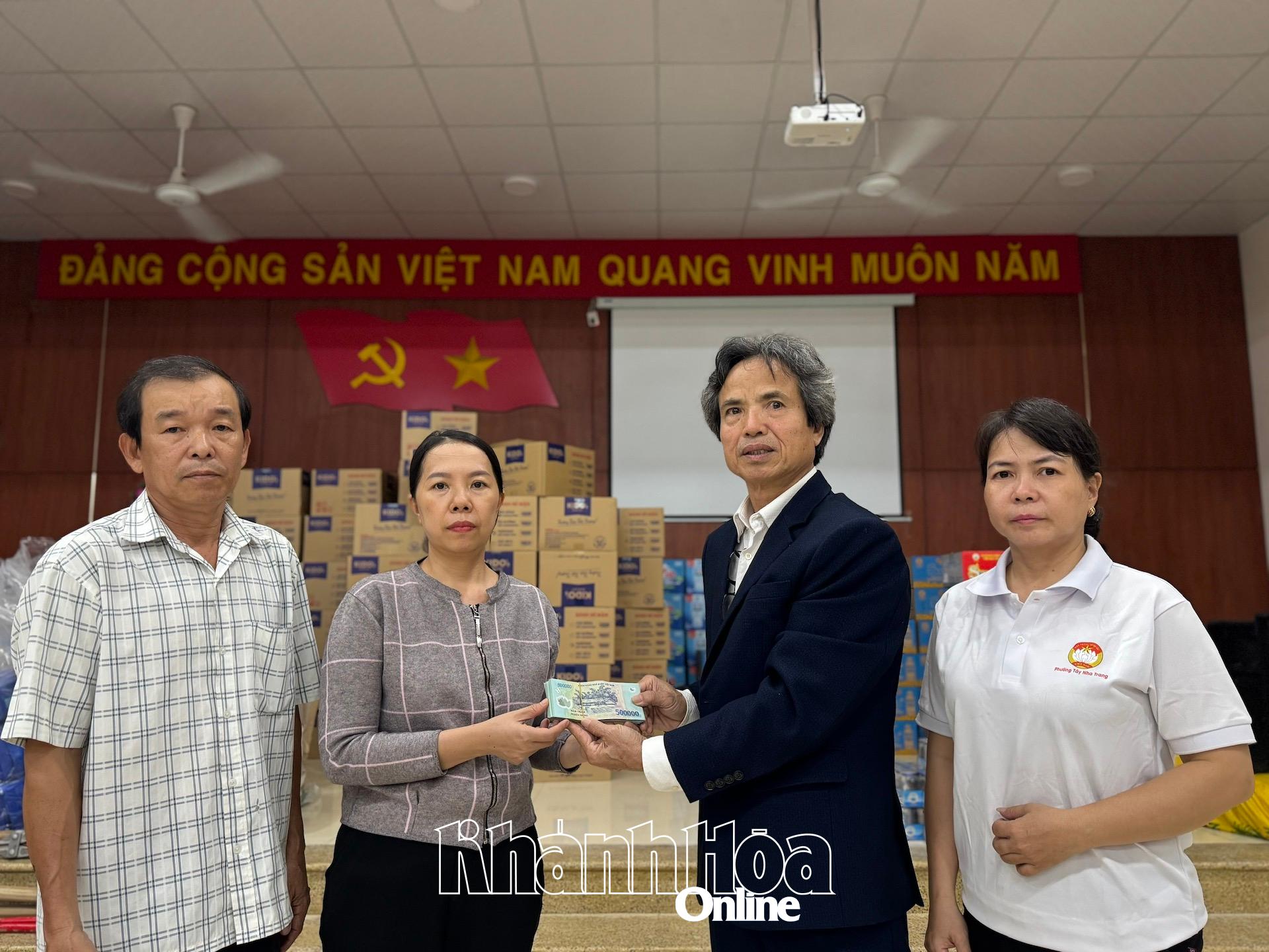 | Đại diện Hội Chữ thập đỏ tỉnh trao tiền mặt cho đại diện phường Tây Nha Trang. |
