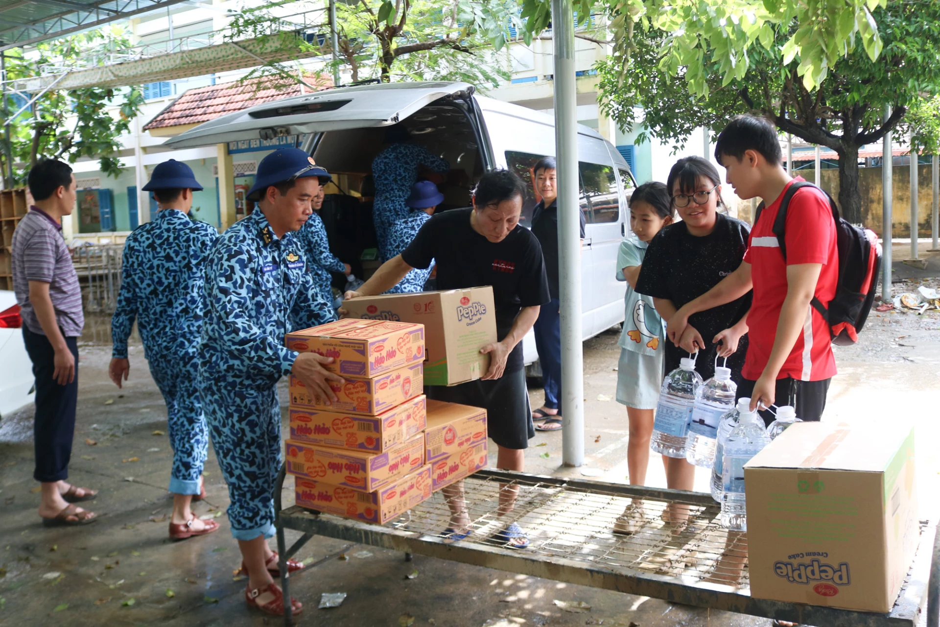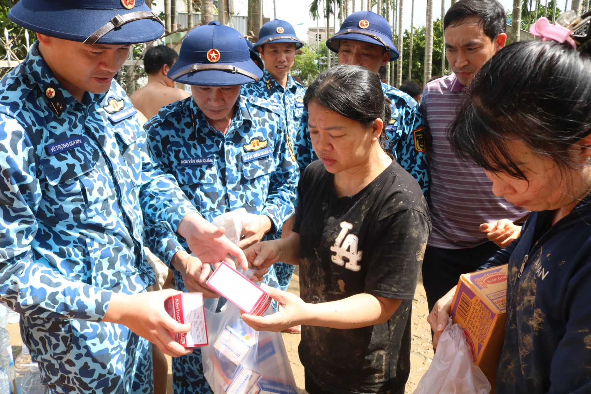 | Đoàn công tác vận chuyển quà đến các vùng bị thiệt hại. |
