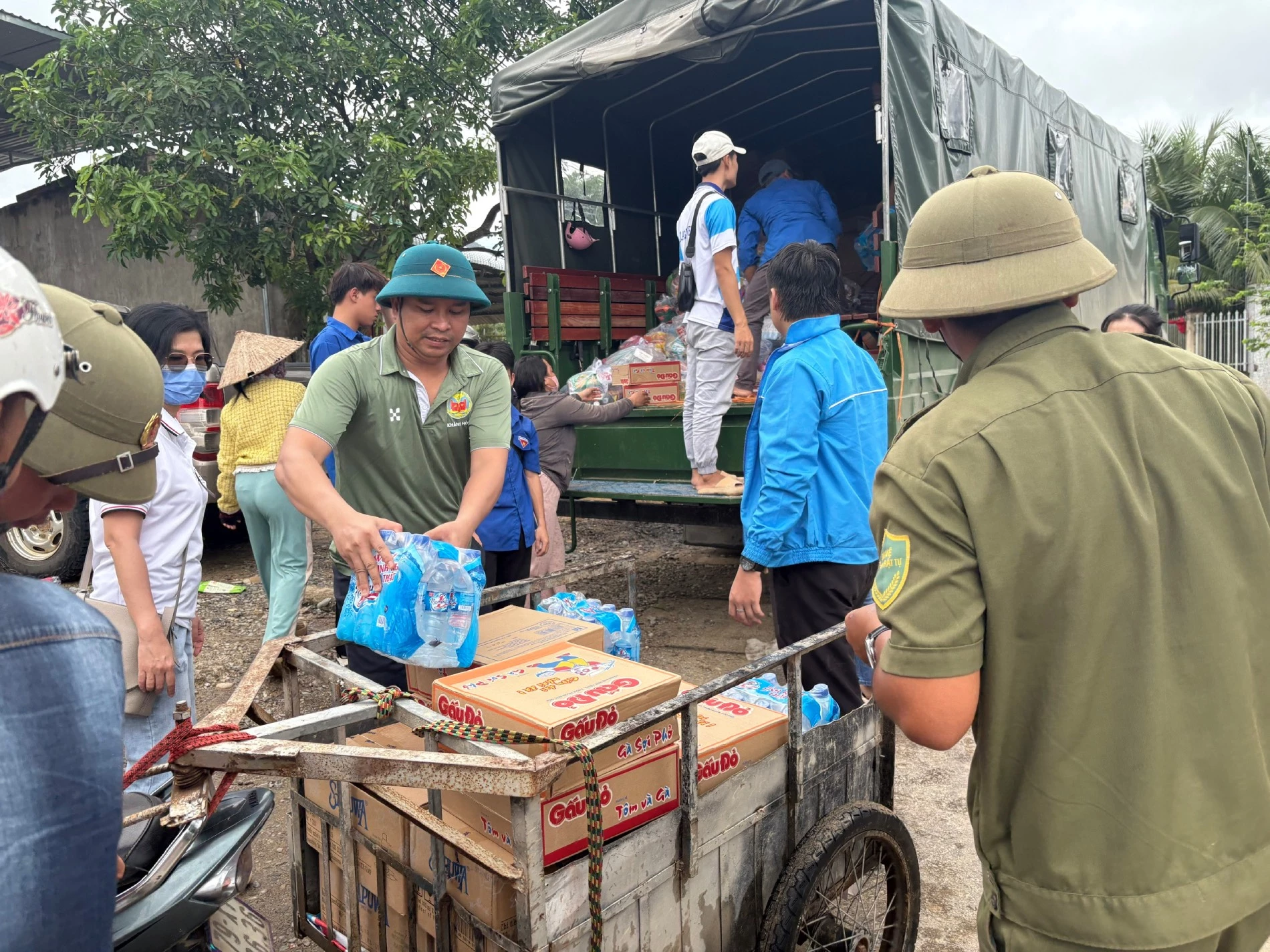 | Chuyển quà hỗ trợ người dân xã Trung Khánh Vĩnh. |