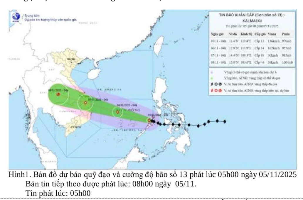 Theo Đài Khí Tượng Thủy Văn Trung Bộ, sáng 5-11, bão Kalmaegi - cơn bão số 13 đã đi vào vùng biển phía Đông khu vực giữa Biển Đông.
