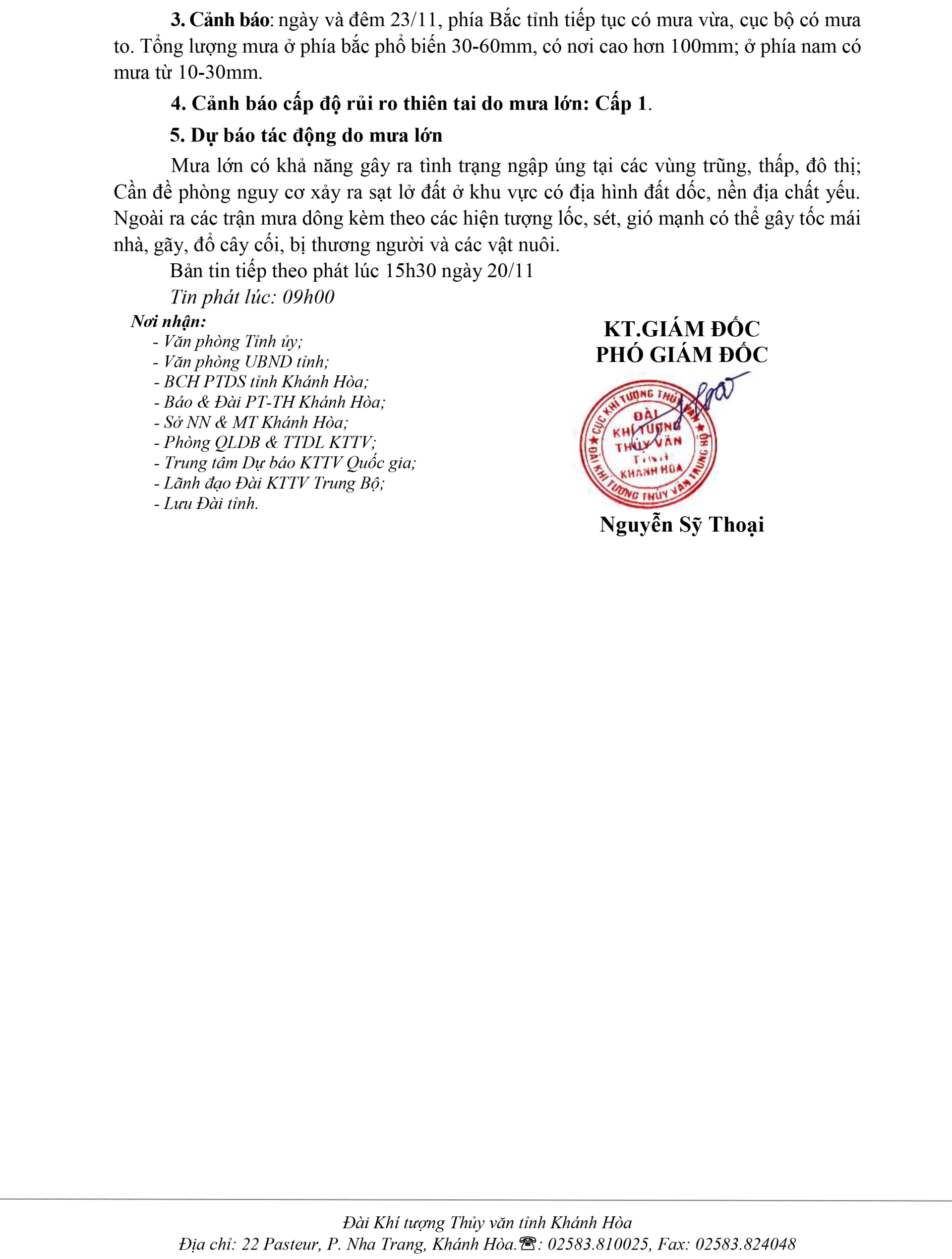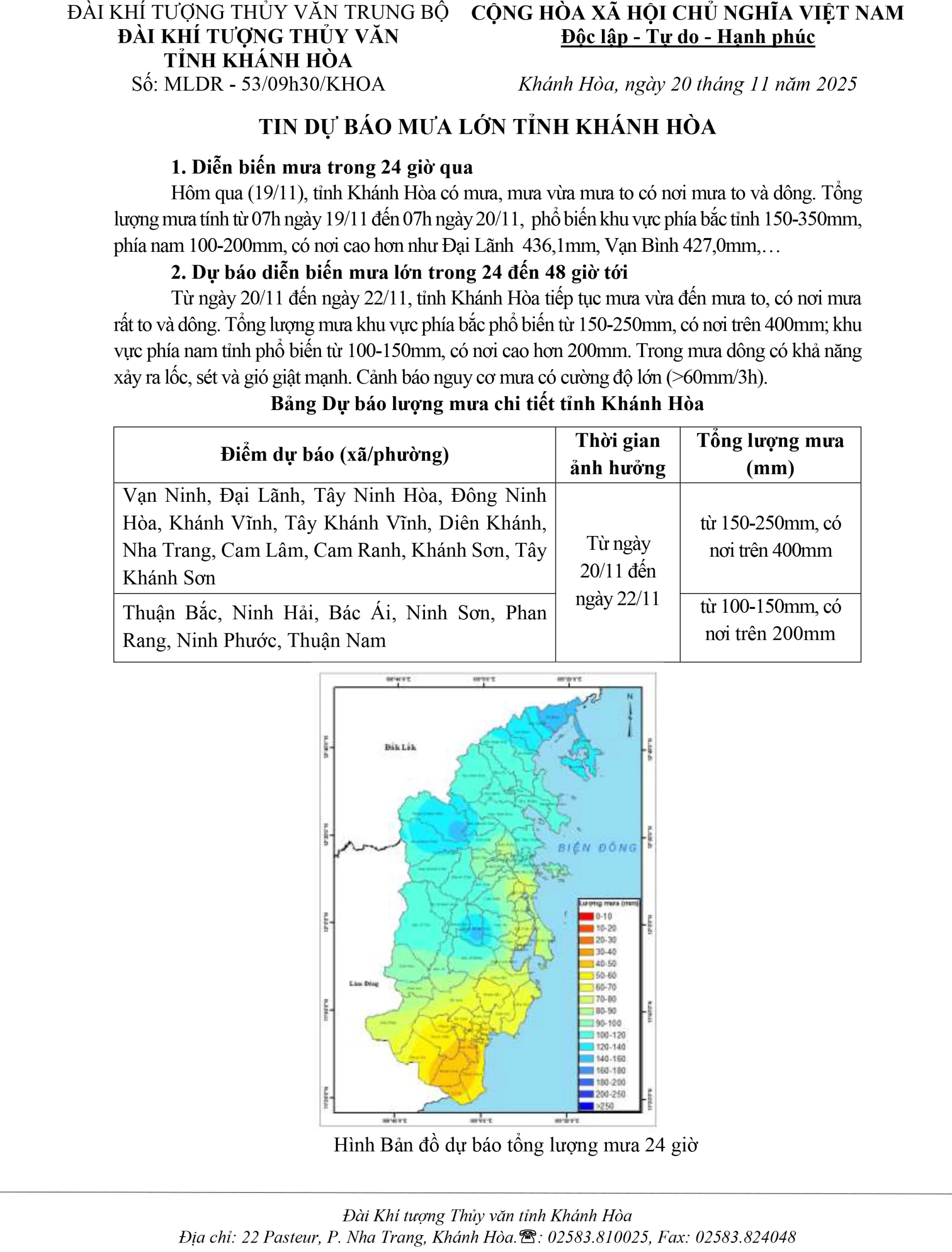 Tin dự báo mưa lớn tỉnh Khánh Hòa